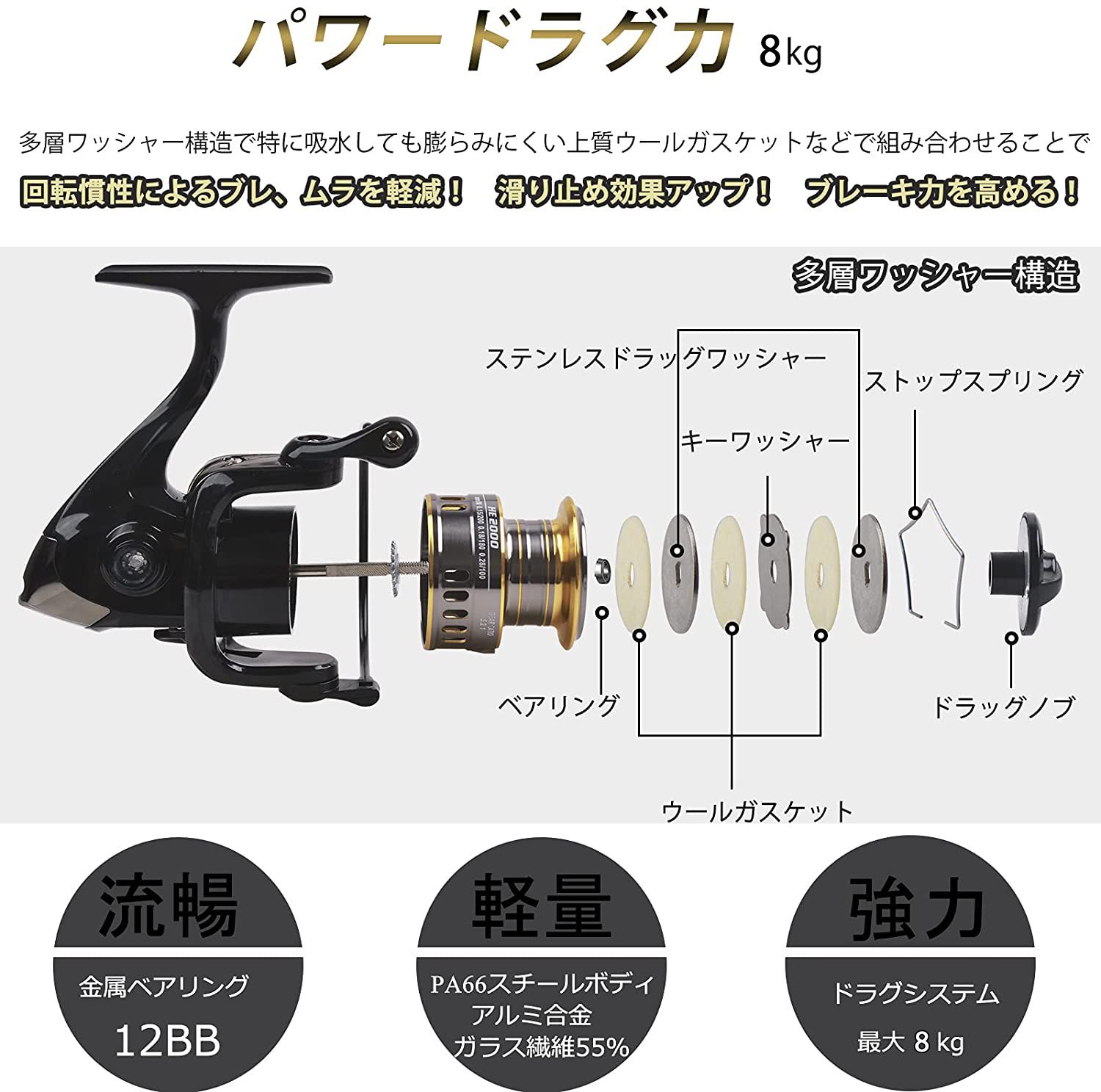 スピニングリール リール バス釣り ジ フィッシング リール 早い者勝ち EVA 金属 木 HM1000 HM2000 HM3000 HM4000 HM5000 HM6000 HM7000