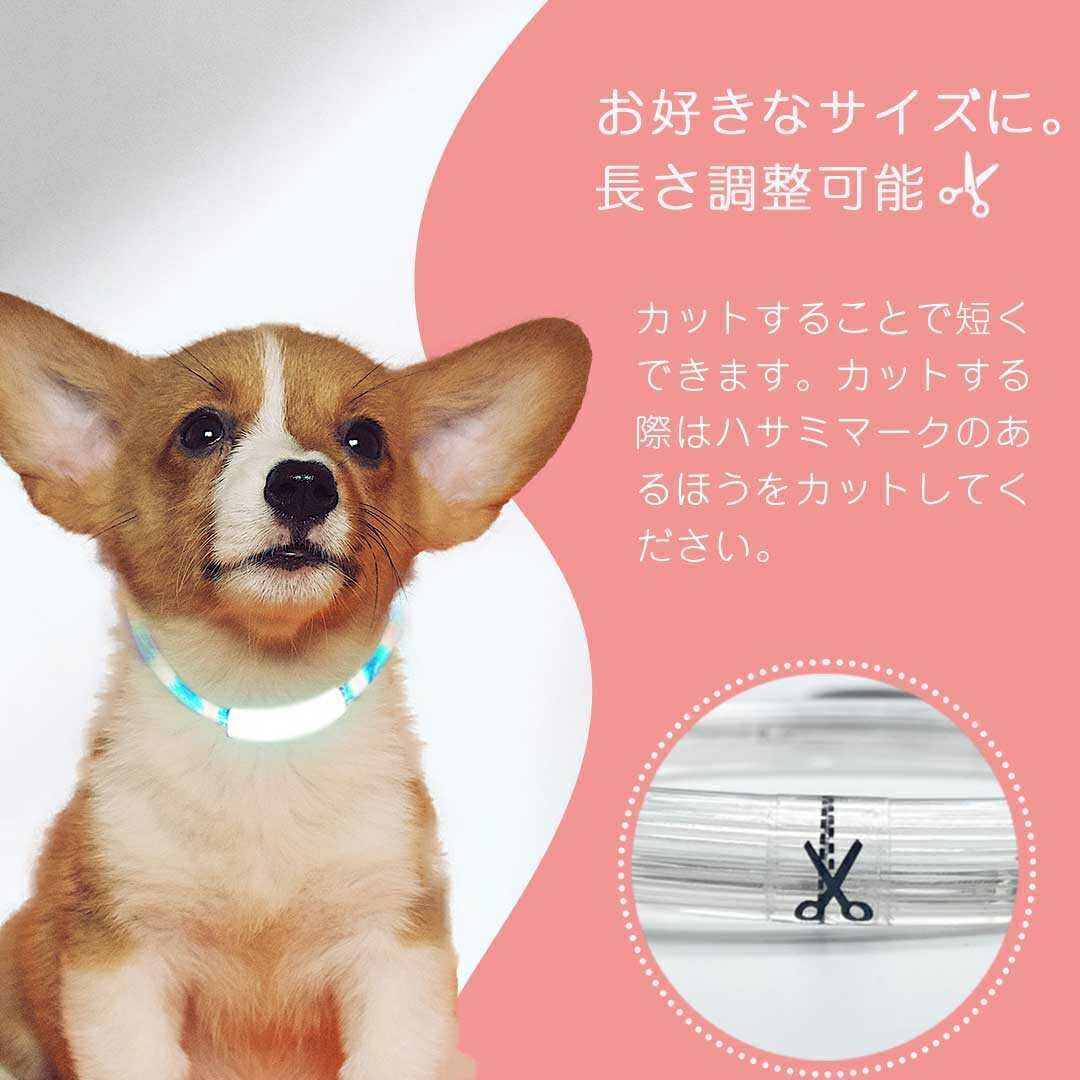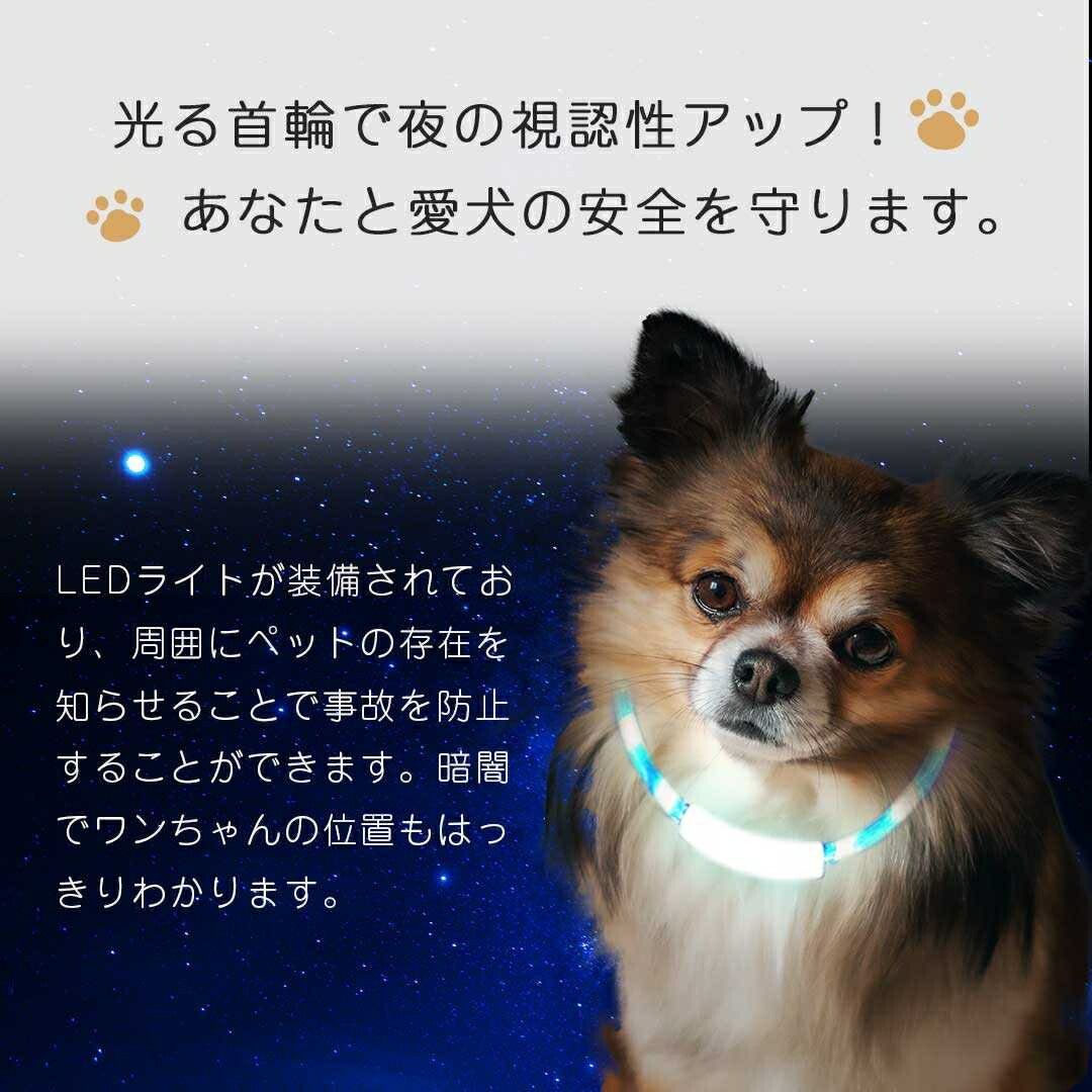 夜道でも安心、犬や猫と安全な散歩ができます。USB充電式!長さ調節も簡単な光る首輪