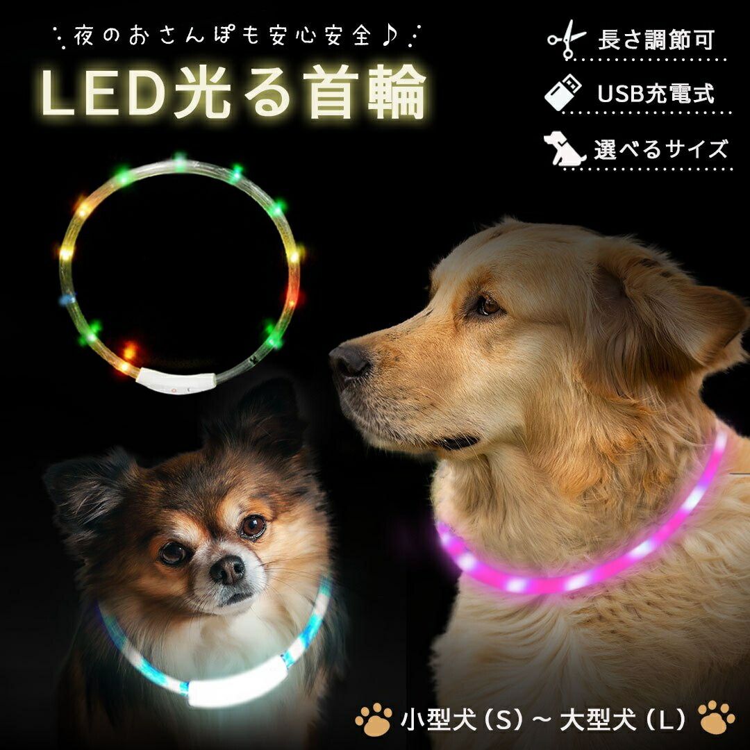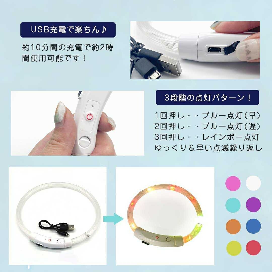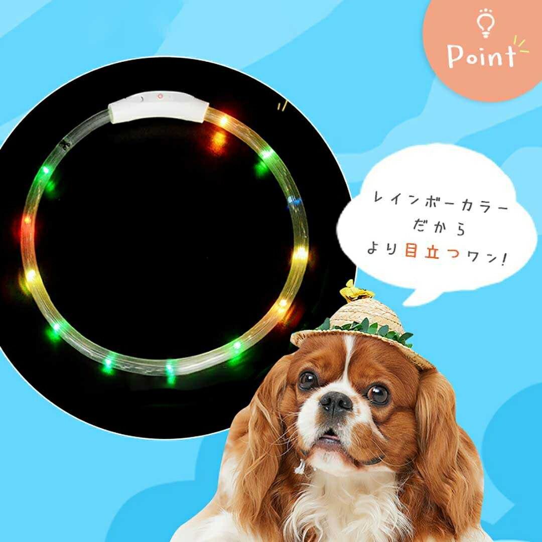 ペット用品 犬 光る首輪 7色 レインボーカラー 3サイズ USB充電式 サイズ調整可能 虹色 夜道 散歩 充電式 安全 LED 小型犬 中型犬 大型犬 バンド 暗闇 位置確認 外灯 運転手 調節 用途 点灯パターン ランダム 長さ調節 腕 足 カバン 自転車 ベビーカー 早い点滅 遅い点滅 点灯 フラッシュバンド 連結