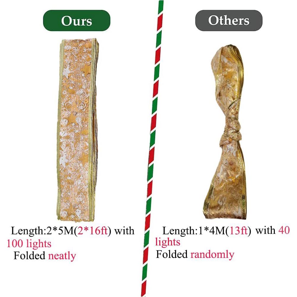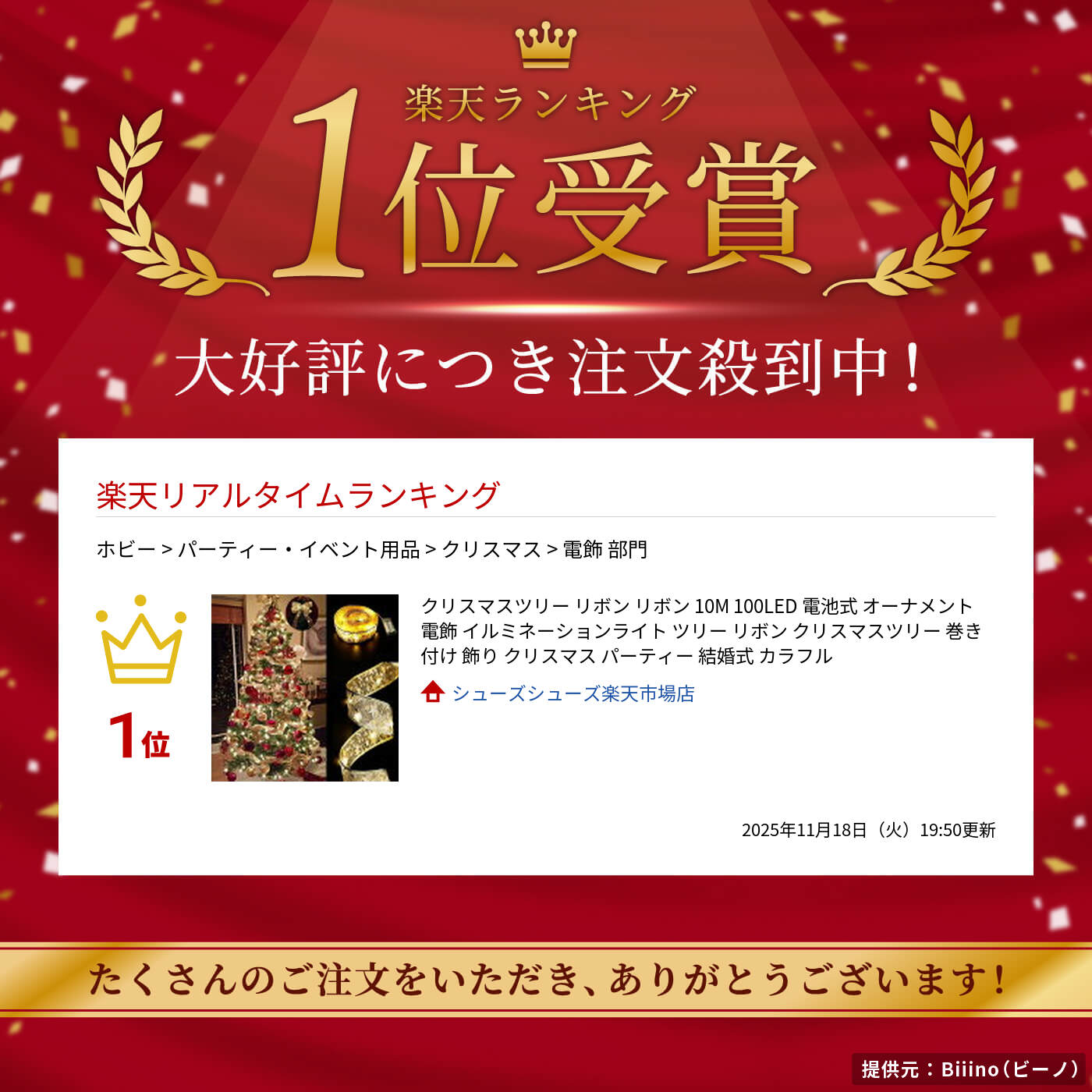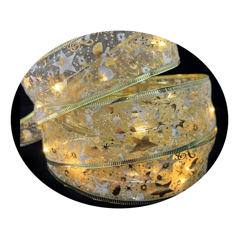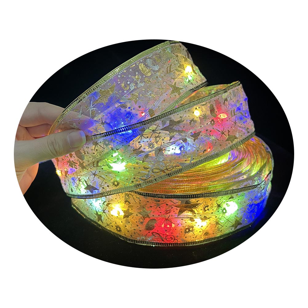 クリスマスツリー リボン 10M 10 ゴールド(ウォームホワイト) シルバー(ウォームホワイト) レッド(ウォームホワイト) ゴールド(カラフル) シルバー(カラフル) レッド(カラフル)