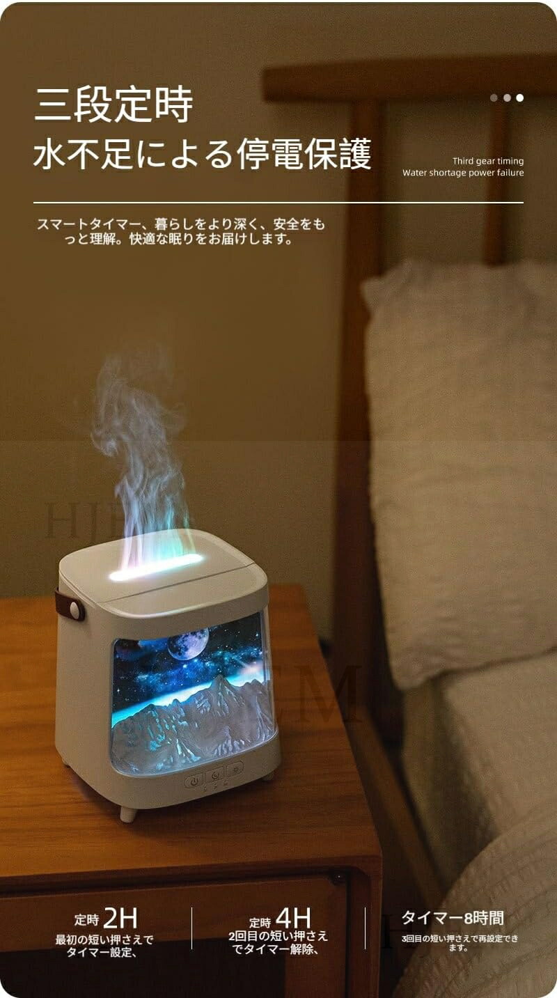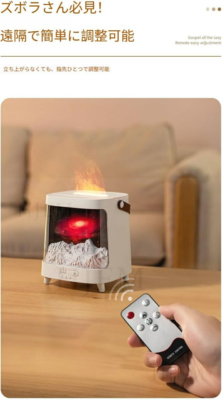 この超音波加湿器は、独自の擬似炎効果で、深いリラックス空間を演出します。内蔵のカラフルなLEDライトは、色と明るさを調整できます。コンパクトなデザイン(13×13×15cm)は卓上にぴったり。静音設計でオフィスやデスクの邪魔になりません。大容量の水タンクは乾燥を効果的に防ぎ、スタイリッシュな空間を演出します。