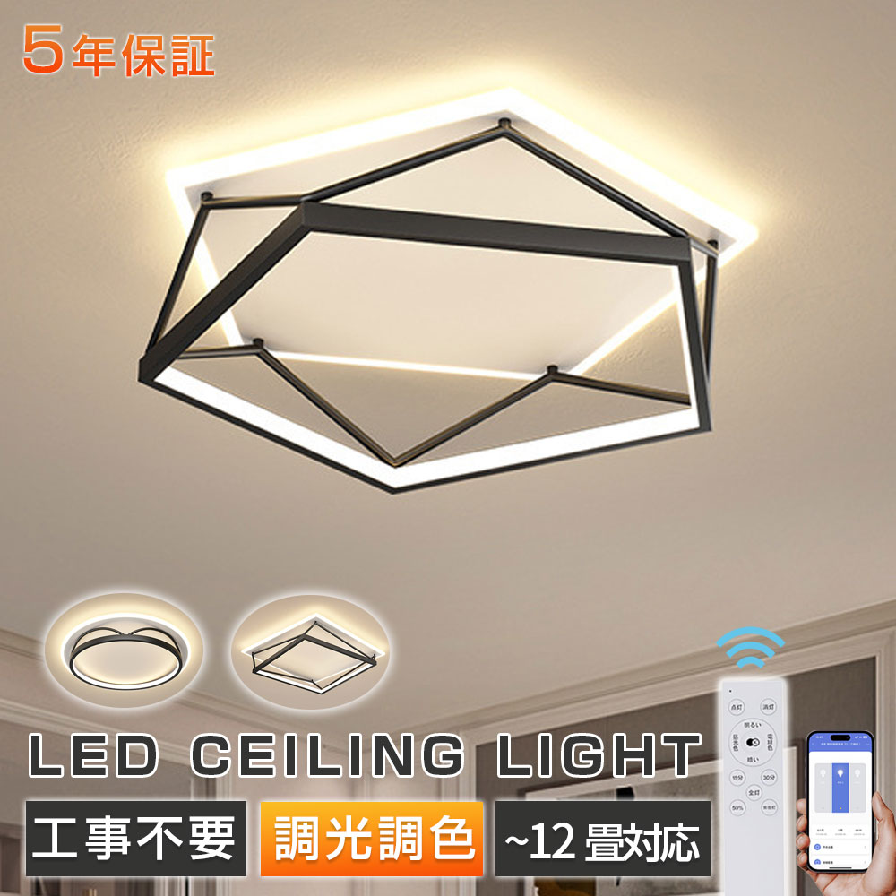シーリングライト LED 北欧 明るい 50cm-円形 50cm-四角形 55cm-五角形 昼光色 電球色 三色切替 調光調色【リモコン付き】