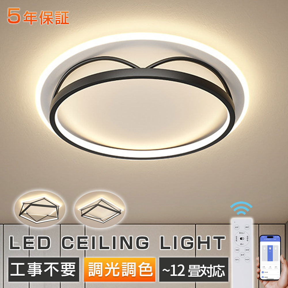 シーリングライト LED 北欧 明るい 50cm-円形 50cm-四角形 55cm-五角形 昼光色 電球色 三色切替 調光調色【リモコン付き】