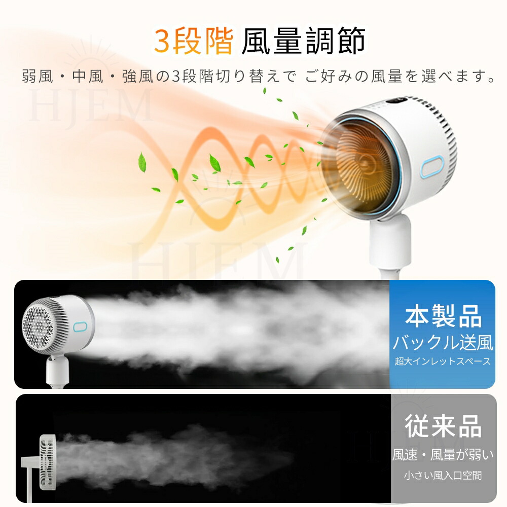 【三段階の涼風、二段階の暖風が調整可能、三つのモードが選択可能】新しい扇風機の運転モードは、送風、涼風、暖風に切り替えることができます。涼風ファンを利用し、酷暑の日に氷を入れると、冷却効果が一段と高まります。涼風モードの風量は、弱、中、強の三つの段階で設定できます。暖風モードの風量は、弱、強の二段階で設定できます。涼風モードはエアコンよりもやさしく、扇風機よりも涼しく、暖風モードは伝統的な電気ストーブよりも安全で、部屋全体を素早く暖めることができ、子供、女性、高齢者など寒さに弱い人に適しています。