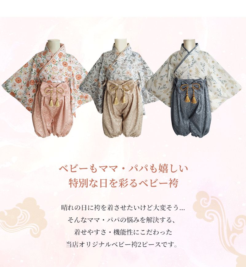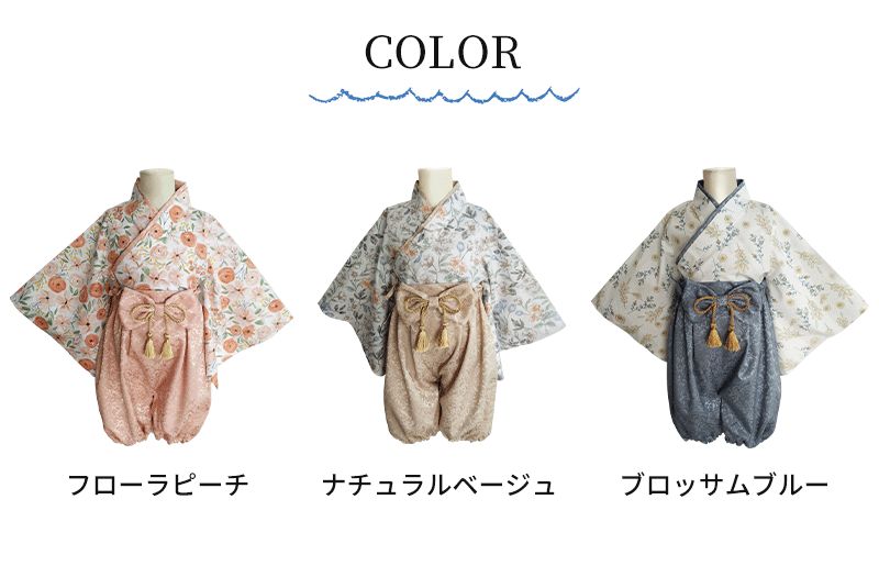 ベビー袴 2ピース セパレート 着物 キッズ ベビー マタニティ 早い者勝ち ブロッサムブルー ナチュラルベージュ フローラピーチ 70cm 80cm 90cm