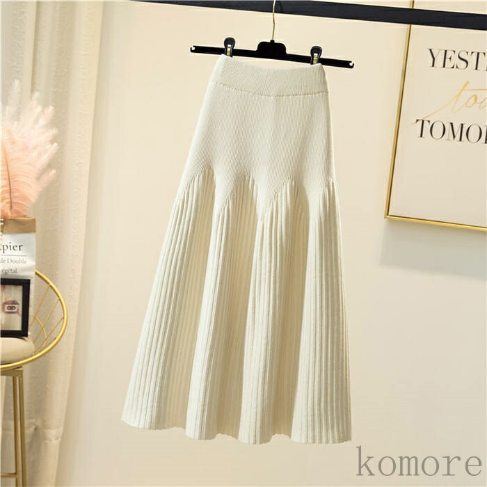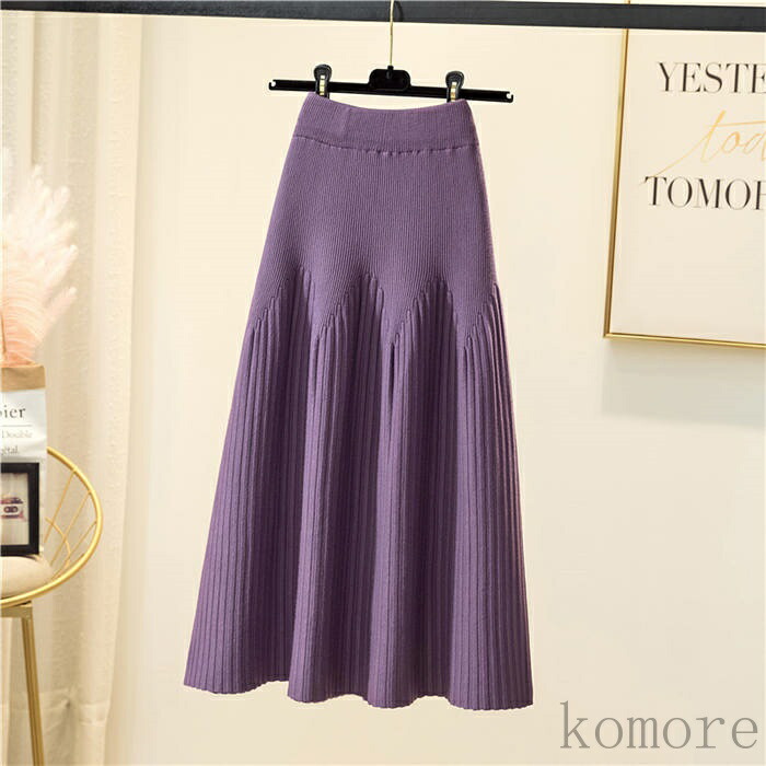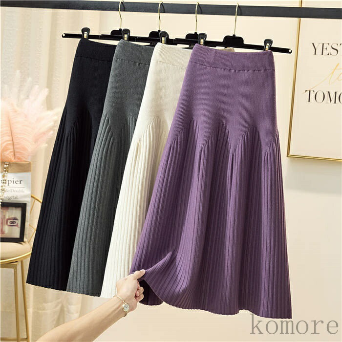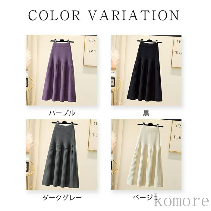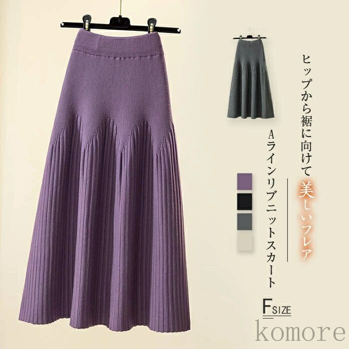 ニット スカート フレアスカート ニッ ボトムス スカート 人気 黒 ベージュ ダークグレー パープル