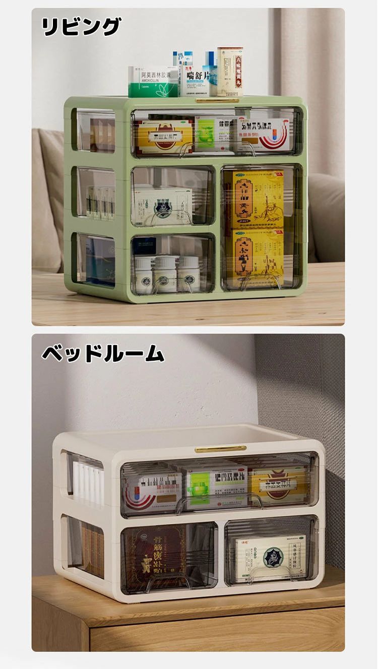 引き出し式 薬品薬物収 箱 雑物収納 グリーン ベージュ 2段 3段A 3段B 4段 5段