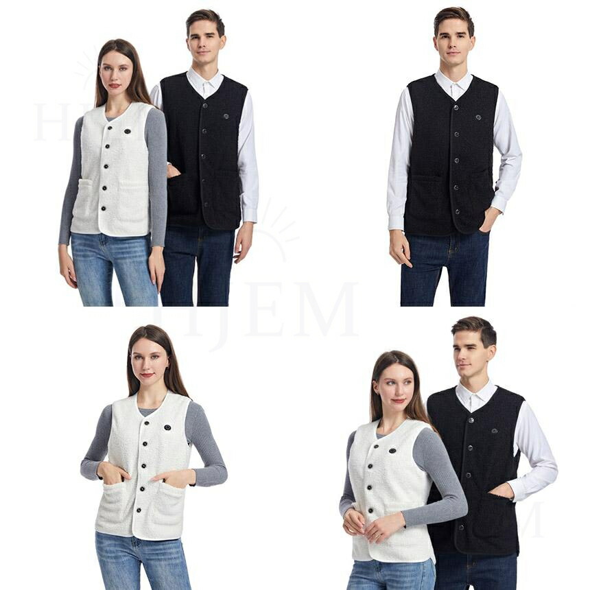 日本製グラフェン繊維ヒーターを採用し、電源を入れた後、約5秒ぐらい温まり始め、30秒ほど暖かさが広がります。加熱ベストの中身には中綿入り、ヒーターとの組み合わせで熱を逃さず、重ね着では得られない確実な暖かさを与えます。約3秒で発熱スタート。首/肩/前面/背面の4箇所から温めたい部分をお好みで選択できます。 赤ランプ高温(65℃)白ランプ中温(55℃)青ランプ 低温(45℃)グリーンランプの3段階から温度設定ができ、ボタンの色で温度段階が一目で分かります。