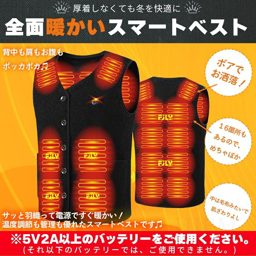 電熱ベスト レディース おしゃれ 16箇所発熱 M-4L 寒さ対策 あったかい 温度調整 ヒーターベスト ヒート 電熱ジャケット 発熱電熱ウェア 速暖 前後独立 USB充電 丸洗い可 防 大きいサイズ
