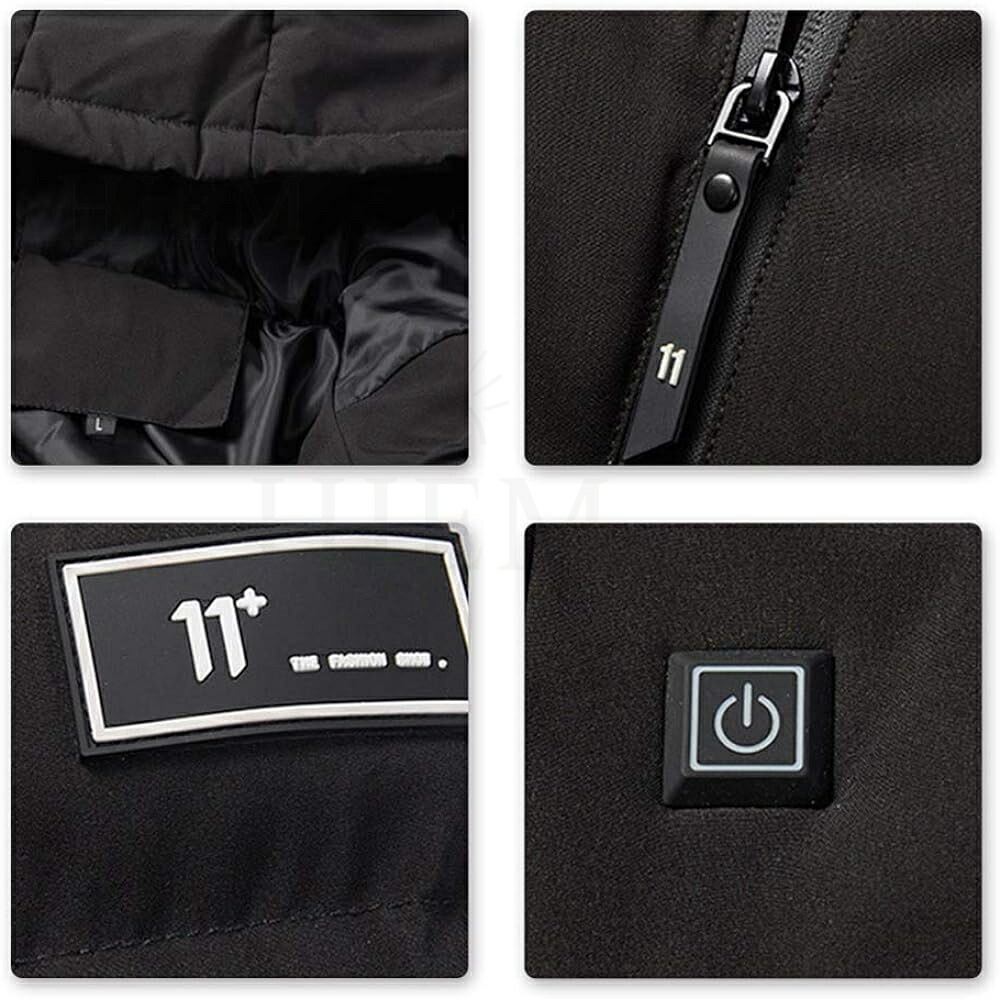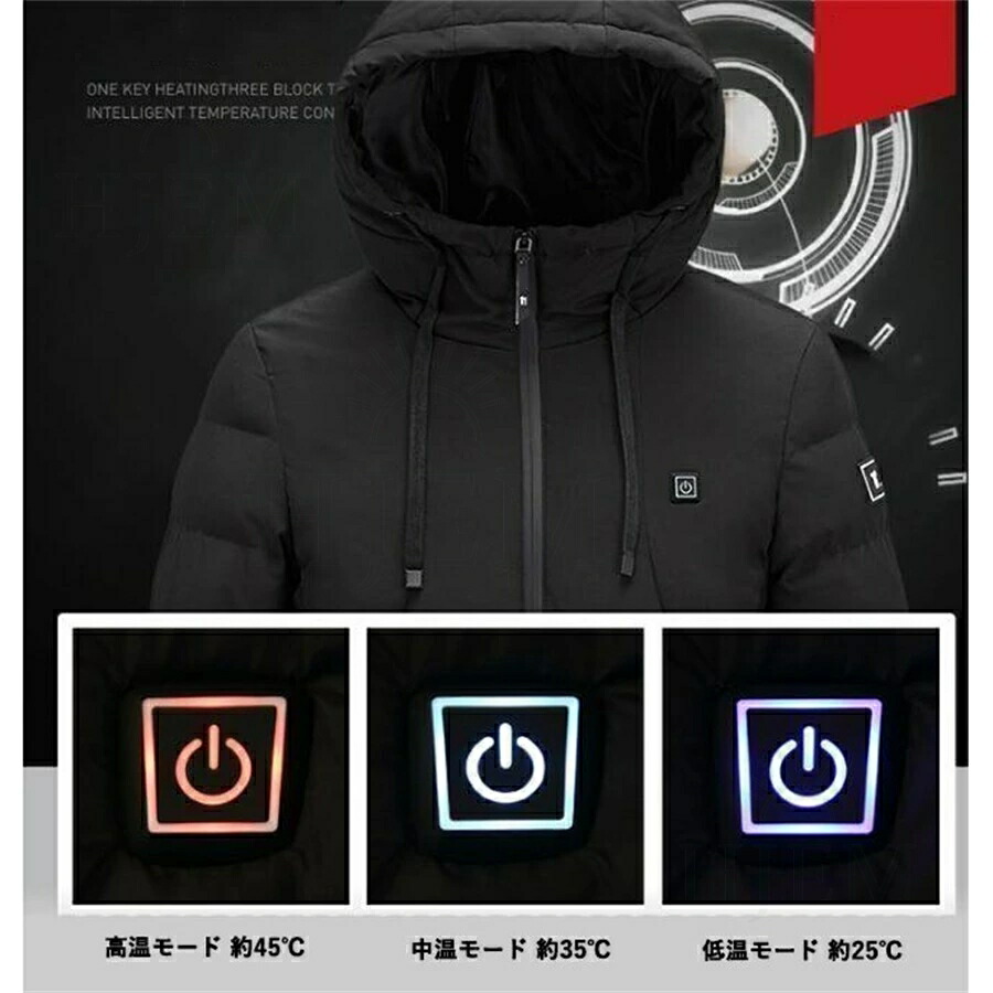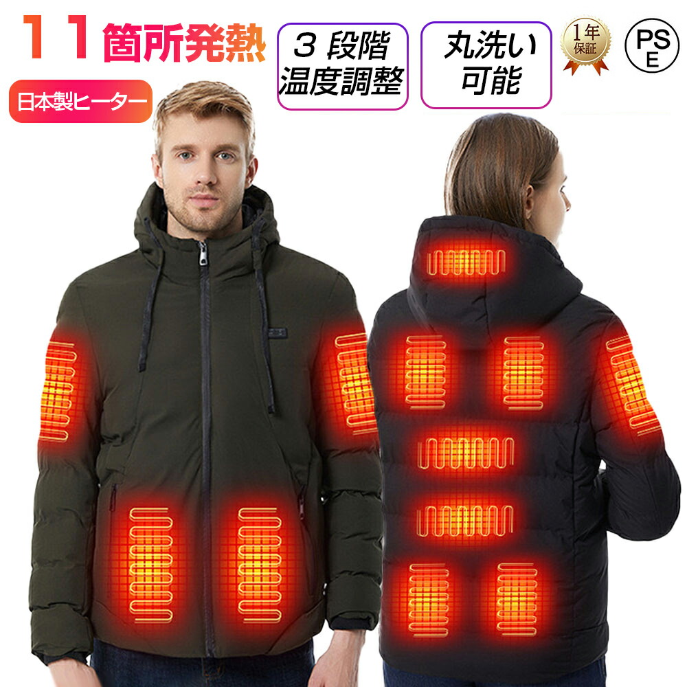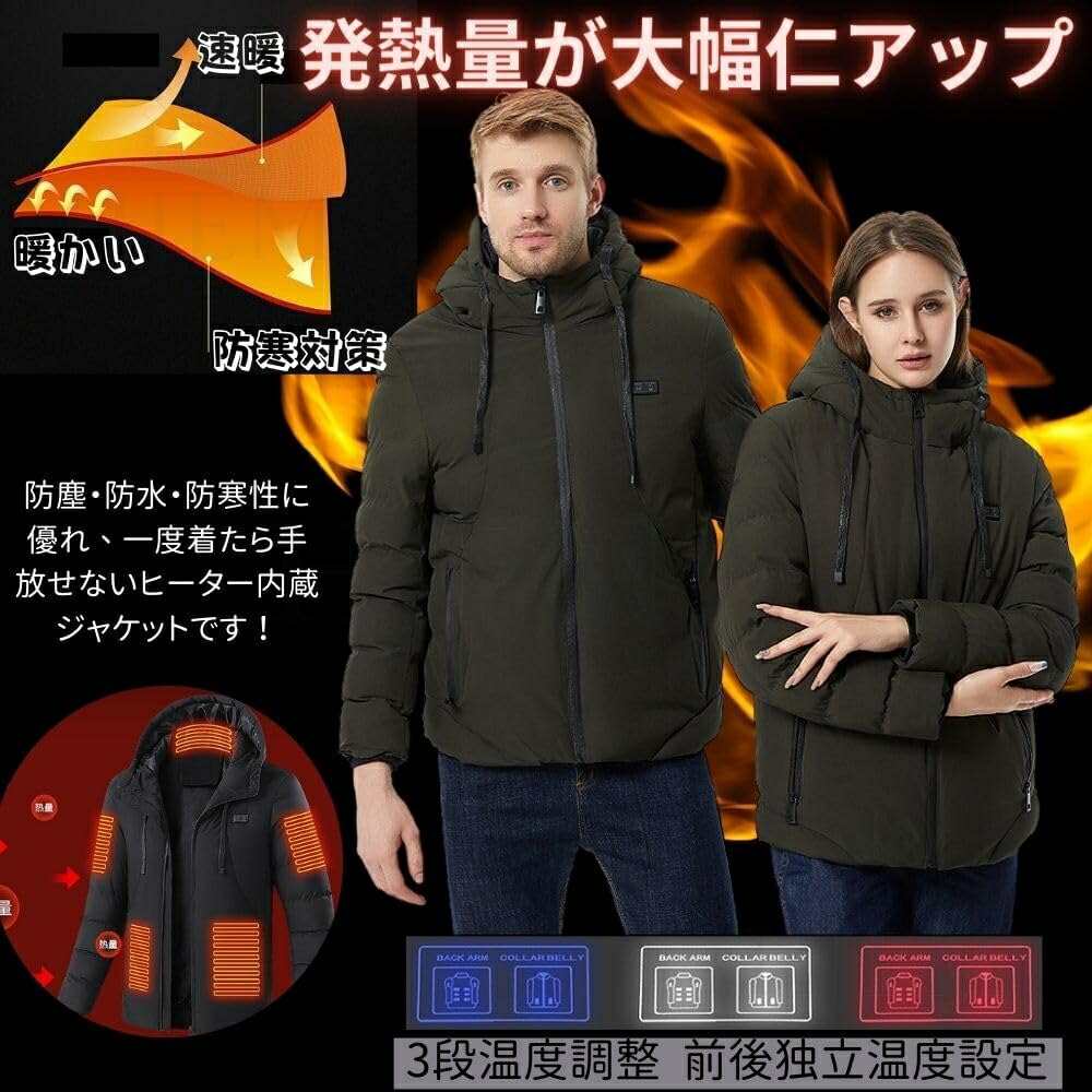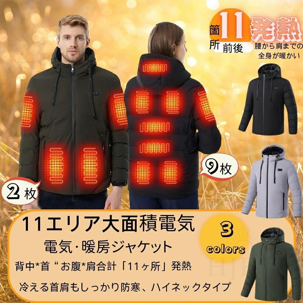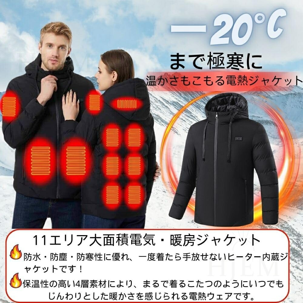 電熱ジャケット 長袖 ベンチコート 11エリア発熱 おしゃれ 3段階調温 前後独立温度調節 パネルヒーター 中綿 電熱ベスト 電熱ウェア 速暖 洗える 柔らかい 男女兼用 防寒対策 防寒グ M~5XL