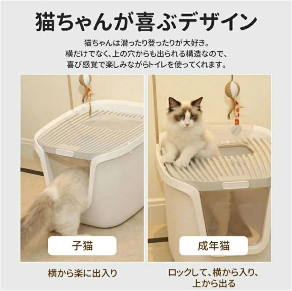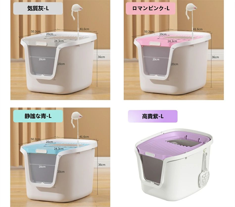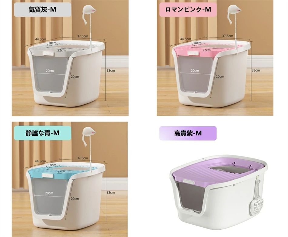 猫トイレ 大きめ ネコトイレ フルカバ 猫用品 トイレ用品 トレーナー トイレ容器 新作 M L XL 気質灰 ロマンピンク 静謐な青 高貴紫