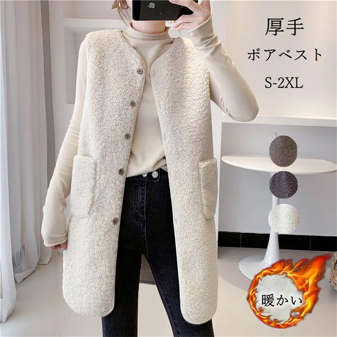 ボアベスト レディース ロング丈 アウ インナー 下着 ナイトウエア 新登場! オフホワイト ベージュ コーヒー色 S M L XL 2XL