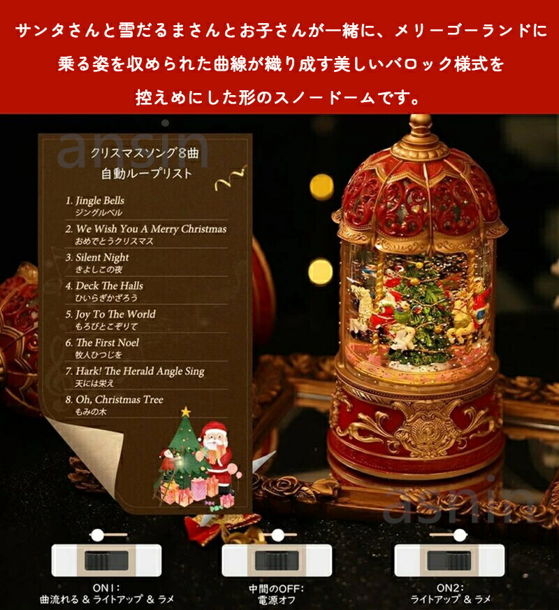 スノードーム クリスマスオルゴール メ 回転木馬(レッド) 回転木馬(ブラウン) テレフォンボックス (レッド) テレフォンボックス (グリーン) テレフォンボックス (ブラウン)
