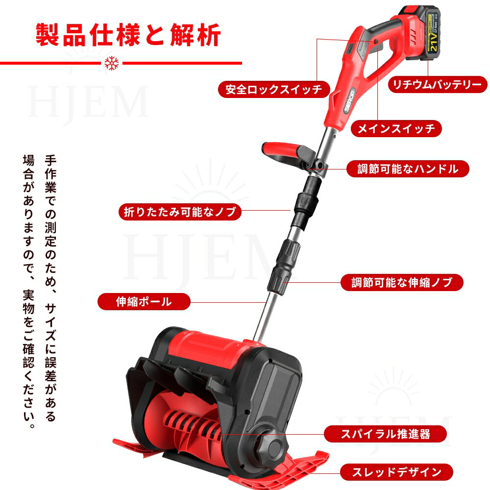 電動除雪機 除雪機 充電式 コードレス レッド ブルー 本体のみ 3.0Ahバッテリー1個+充電器1個 3.0Ahバッテリー2個+充電器1個 3.0Ahバッテリー3個+充電器1個 3.0Ahバッテリー4個+充電器1個 3.0Ahバッテリー5個+充電器1個