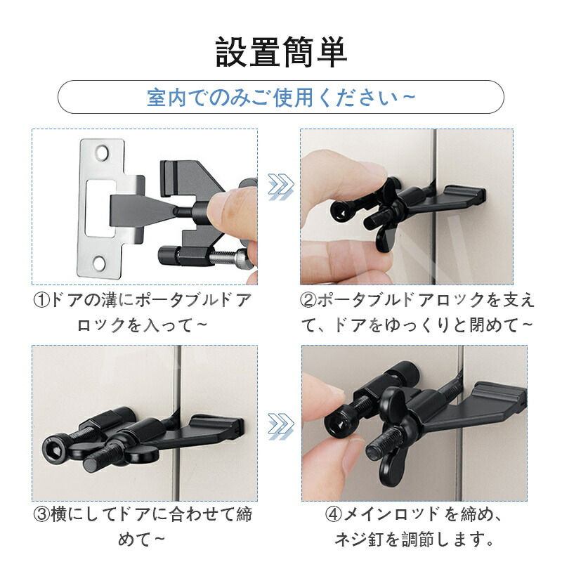 ポータブルドアロック 携帯用ドアロック ブラック グレー 1個 2個