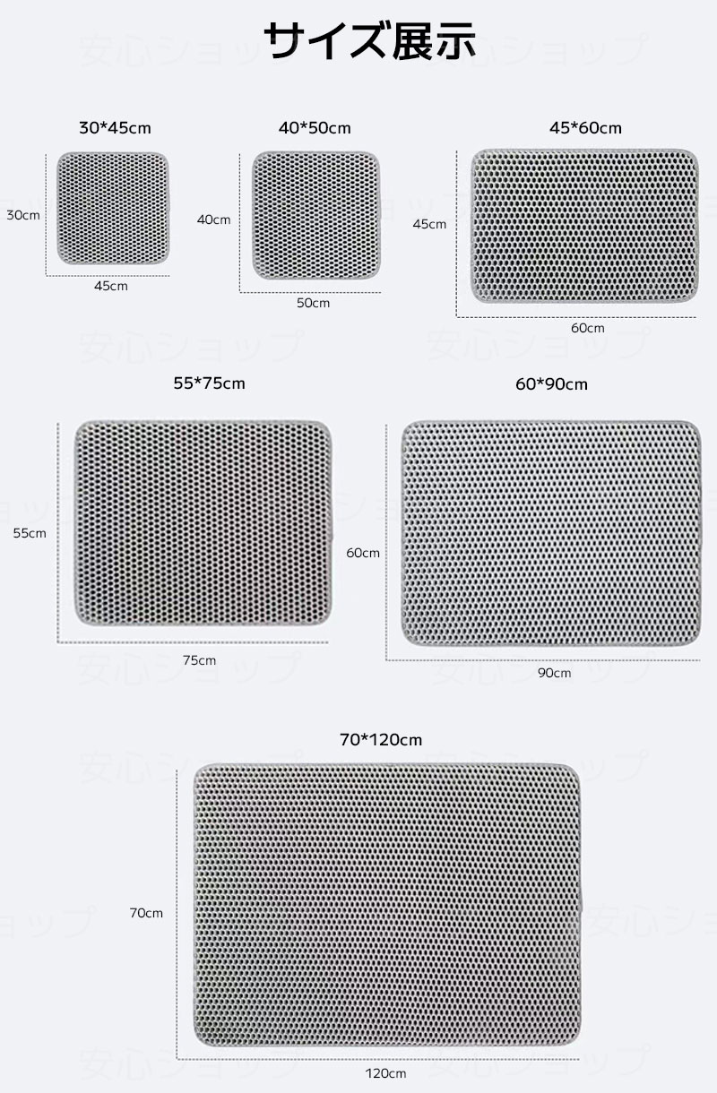 砂取りマット 猫砂 マット 猫 トイレ 猫用品 トイレ用品 砂取りマット 通販 ブラック グレー カーキ ピンク ブルー ブラウン 30cmx45cm 40cmx50cm 45cmx60cm 55cmx75cm 60cmx90cm 70cm*120cm