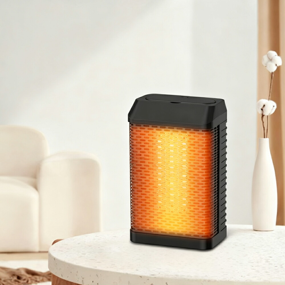 セラミックヒーター 小型 転倒自動OF 機械版 進化版【リモコン付き】 ブラック シルバー