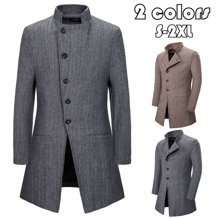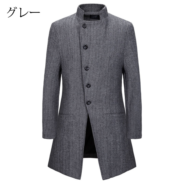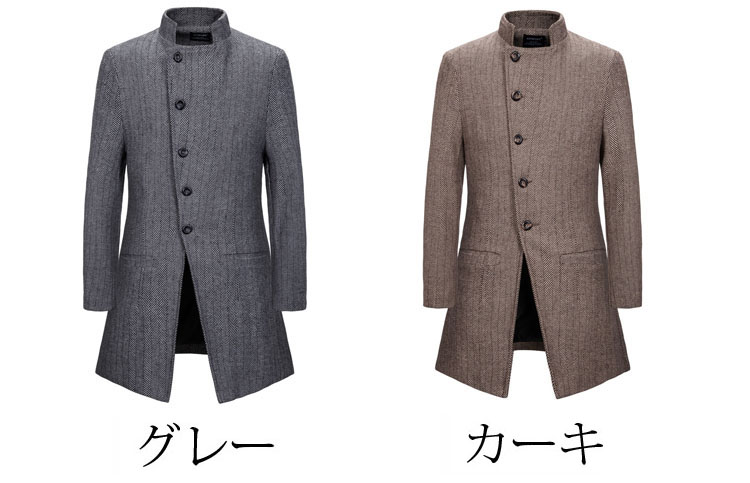 チェスターコート メンズ 立ち襟 ビジ メンズファッション 新作 グレー カーキ S M L XL 2XL