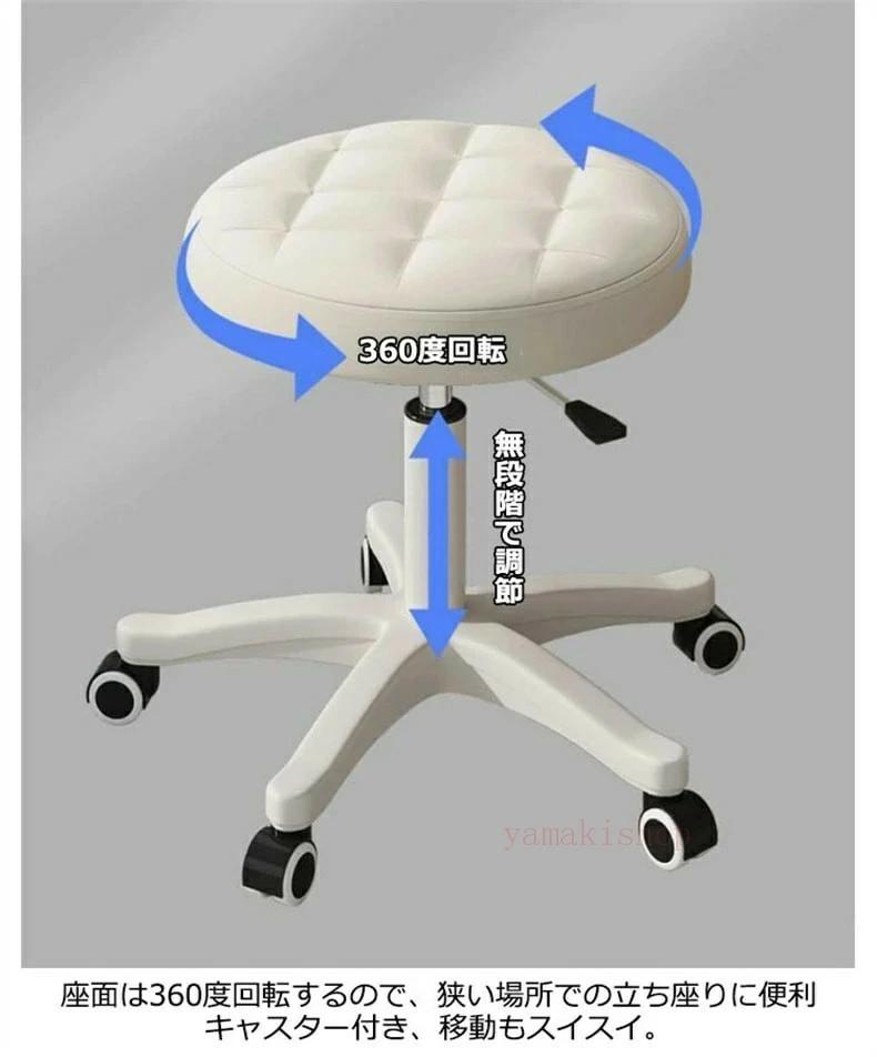 美容室 丸椅子 キャスター付き 椅子 昇降式 ハイチェア 高さ35~45cm 高さ調節可能 PU スツール 回転椅子 イス カウンターチェア エステスツール ネイル カットチェア 施術 診察 サロン