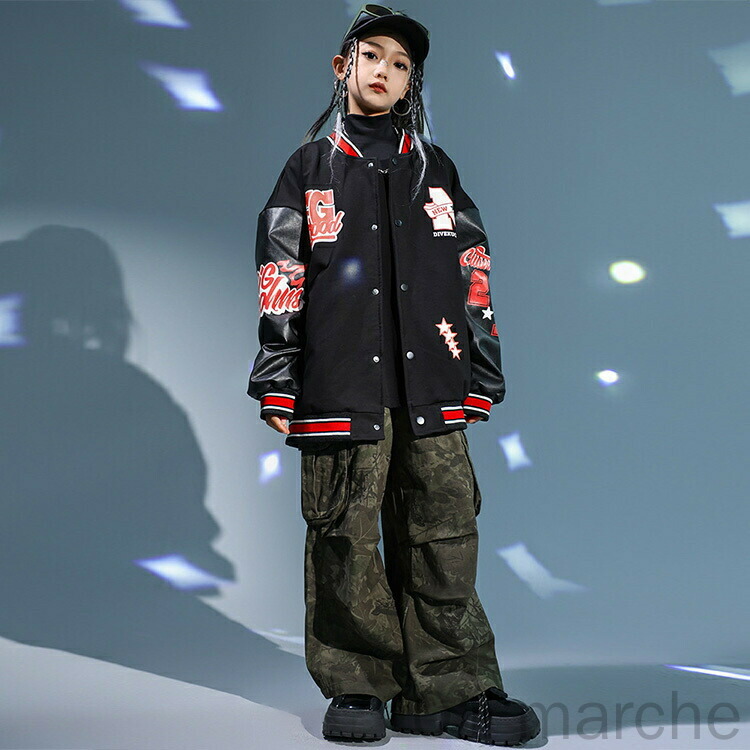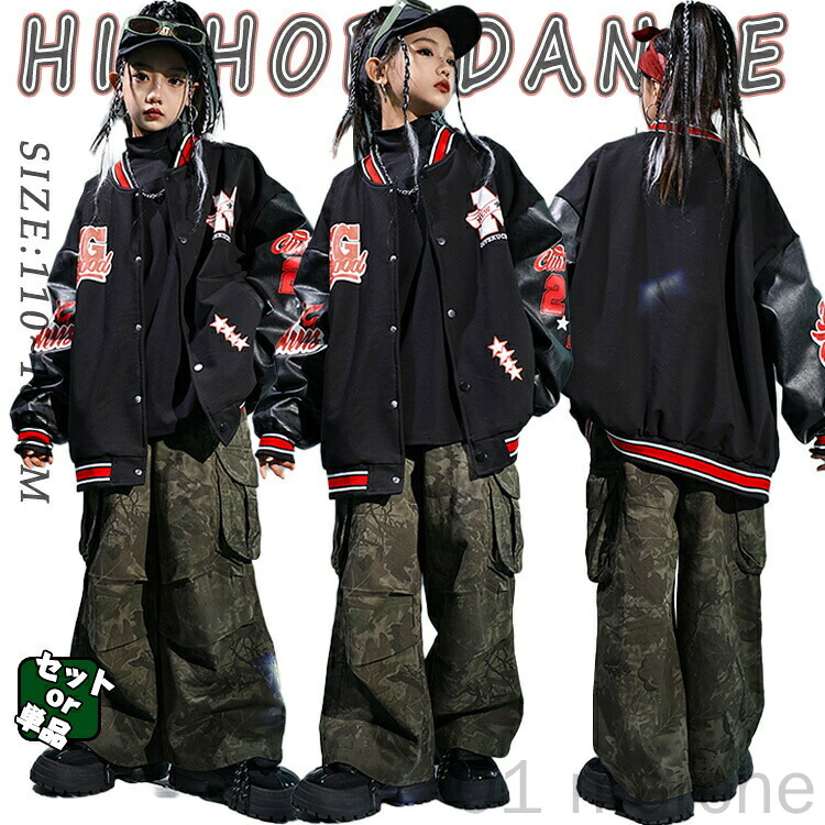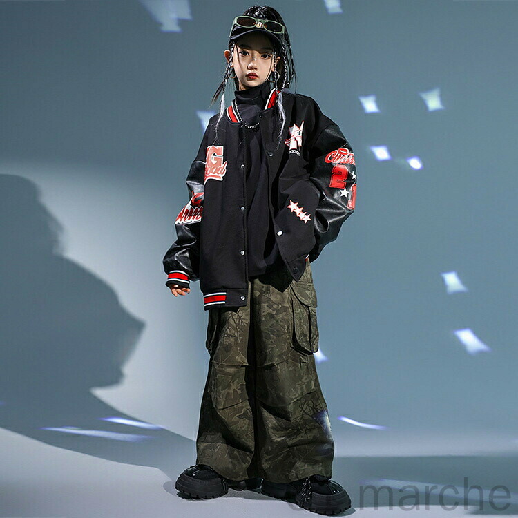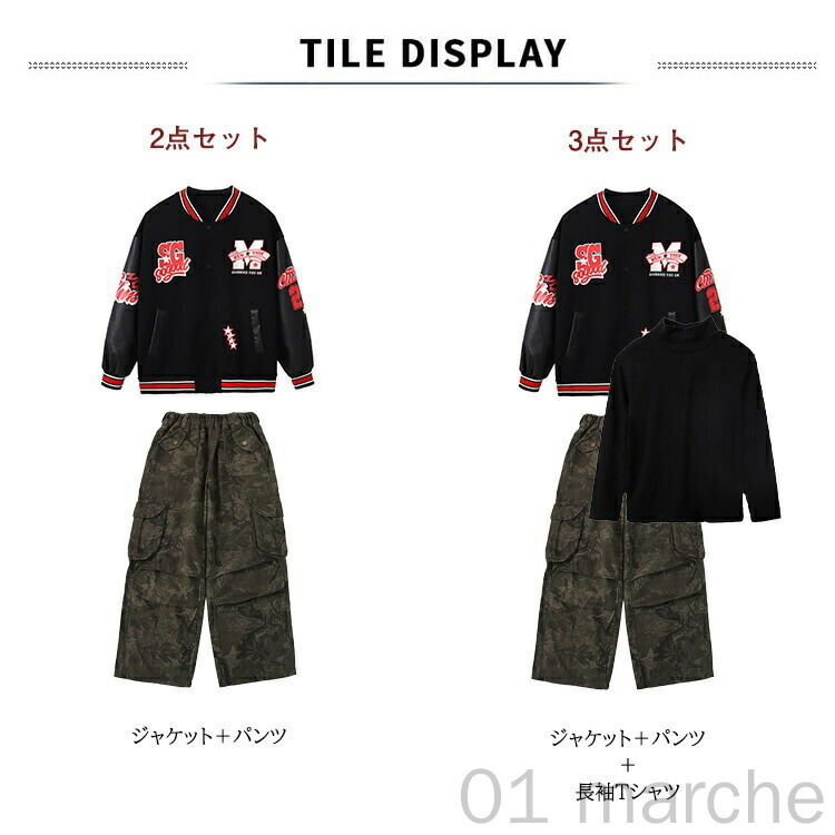 スタジャン 黒 キッズ ダンス衣装 セ キッズ ベビー マタニティ 続々登場 110cm 120cm 130cm 140cm 150cm 160cm 170cm 180cm 2点セット 3点セット ジャケット パンツ 長袖Tシャツ
