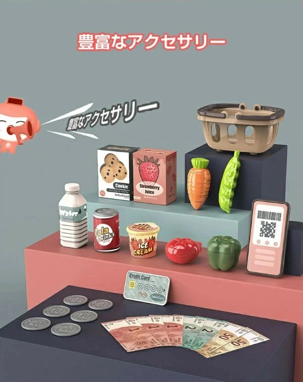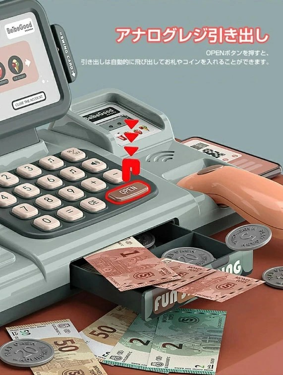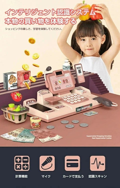 レジおもちゃ レジスターセット お店屋 おもちゃ ままごと ごっこ遊びトイ その他 続々入荷中 ピンク グリーン