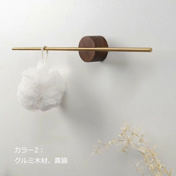 タオル掛け 洗面所 壁 木製 真鍮棒 日用品雑貨 文房具 手芸 続々登場 カラー1 カラー2