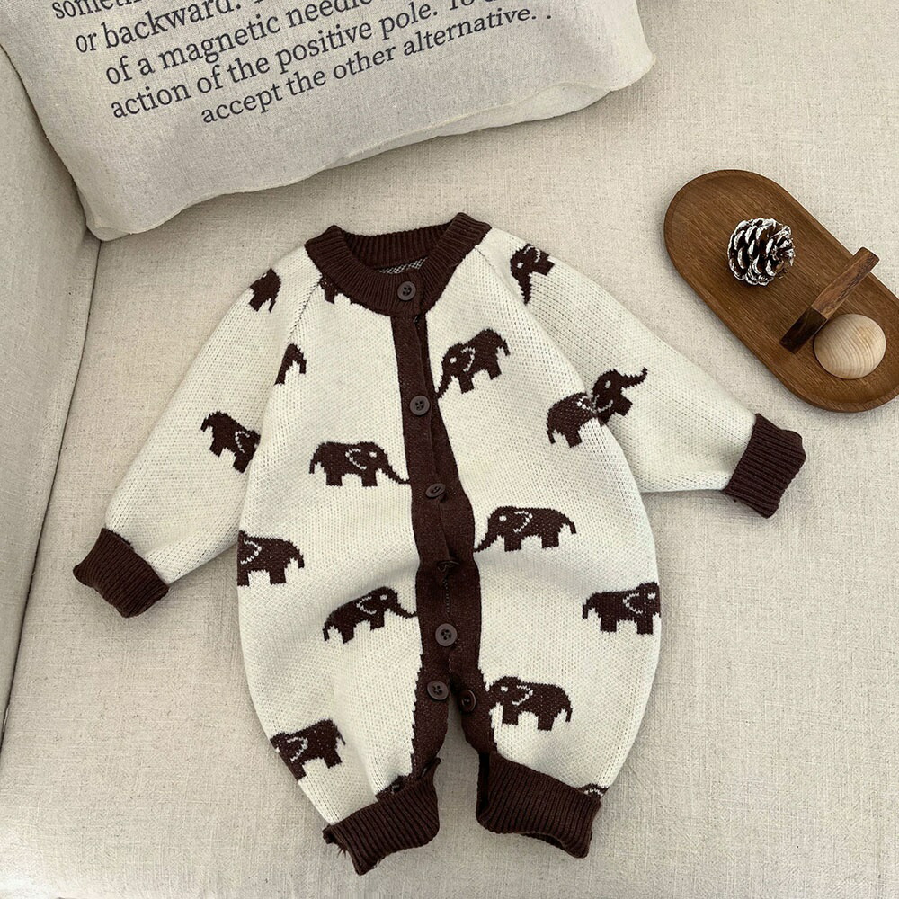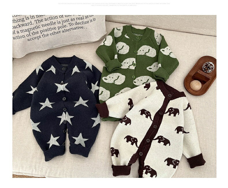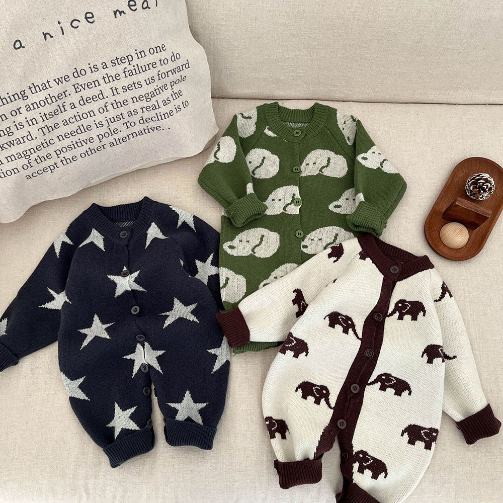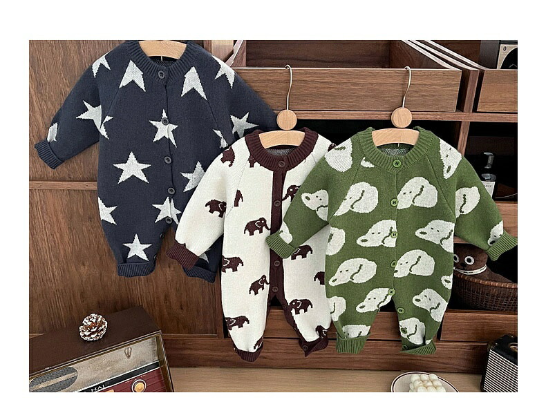 ベビー服 ニット ロンパース 新生児 キッズ ベビー マタニティ 通販 ゾウ 星 犬 66cm 73cm 80cm 90cm 100cm