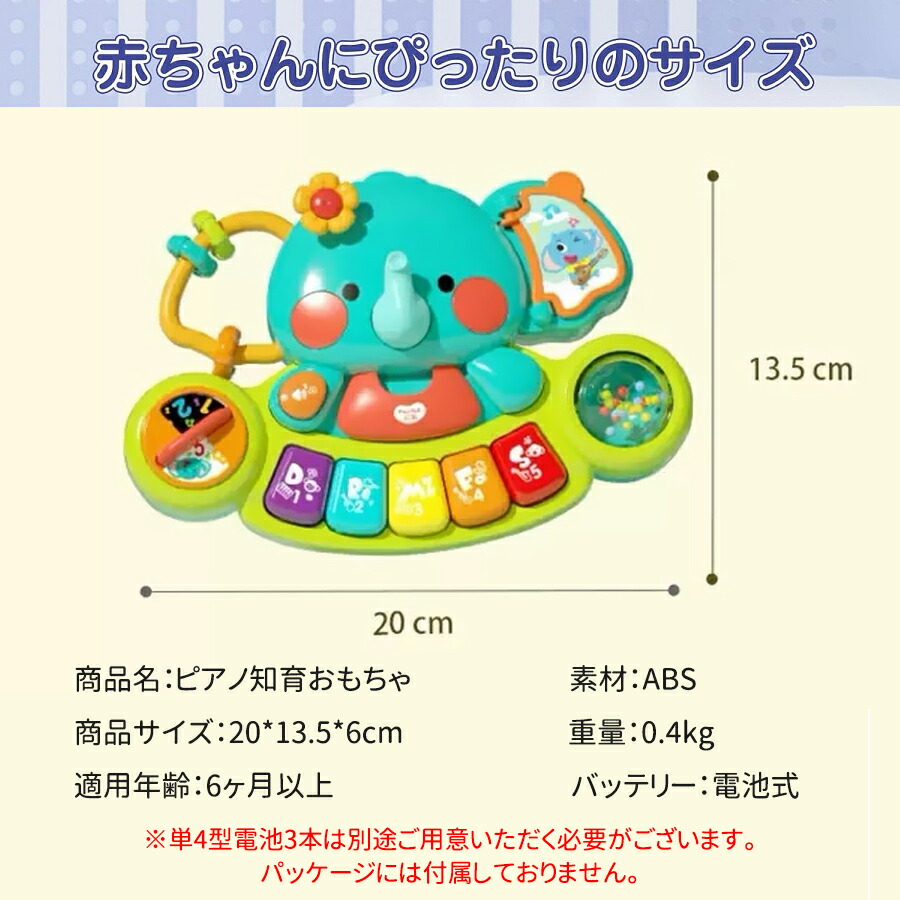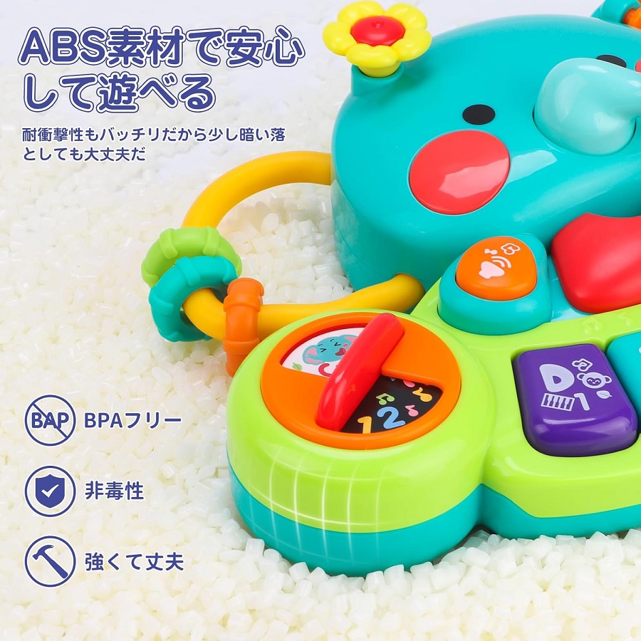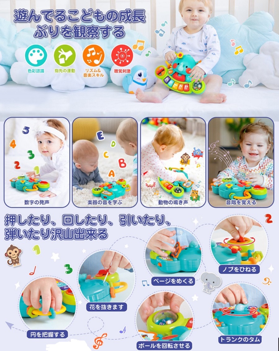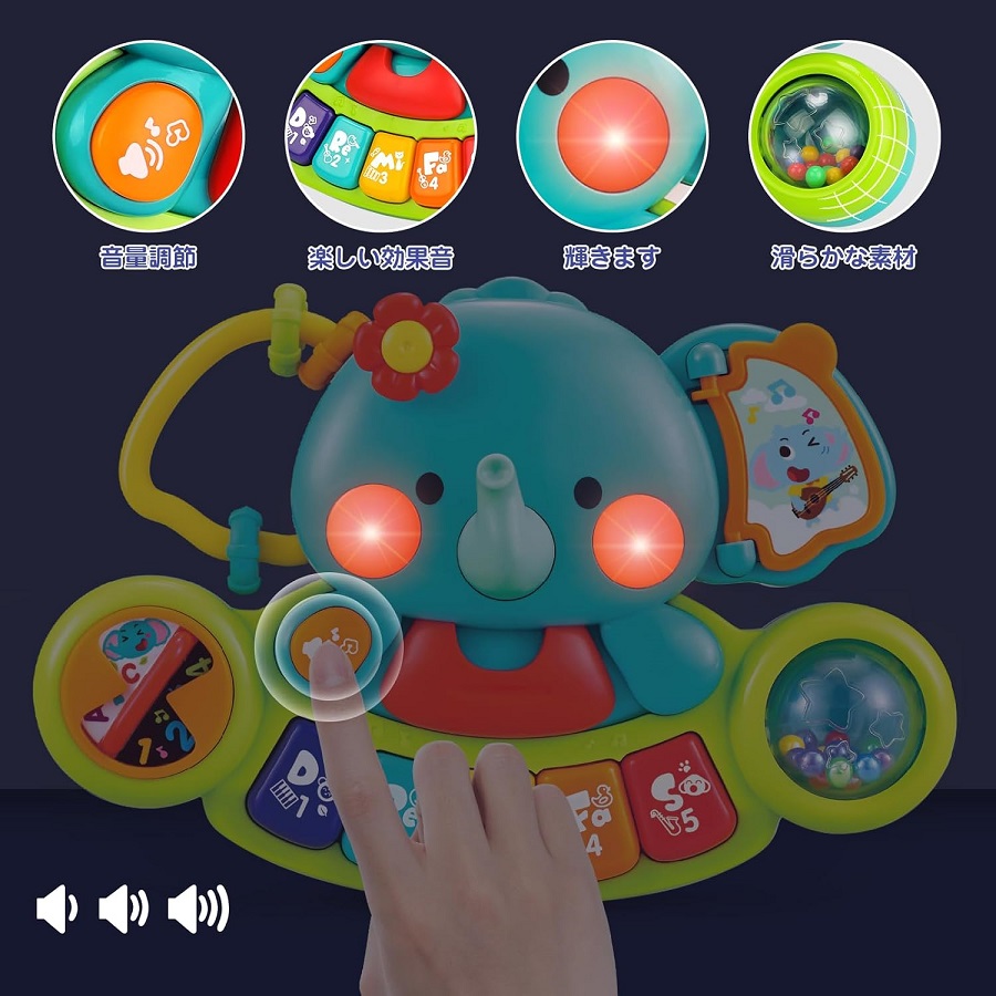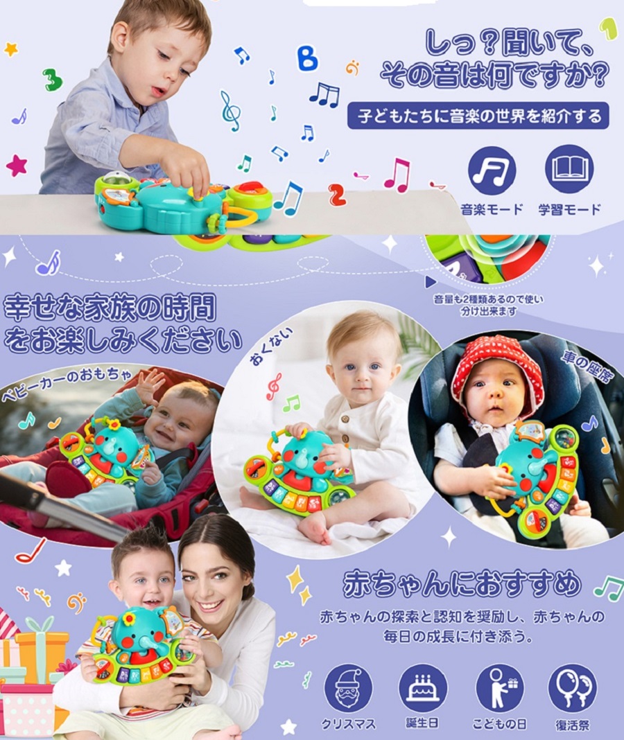 象のイメージがキュートで、LEDライトも幻想的で目を惹かれたし、音も可愛く、子供の興味を引いています。ハンドル付きのデザイン。 赤ちゃんがおもちゃをつかんでどこにでも簡単に持ち運べるようになります。各機能にはさまざまな音と光の効果があり、赤ちゃんの注意を引き、赤ちゃんを最も楽しくすることができます。見た目の可愛さはもちろんのこと、幼児の欲求を満たすよいおもちゃだ!