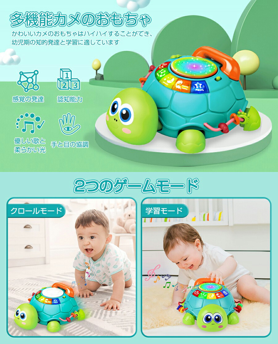 多機能 ハイハイカメ 赤ちゃん おもちゃ 知育玩具 モンテッソーリ 早期開発 指先訓練 音の出るおもちゃ 音楽おもちゃ 電話 数字 ABC学習 聴覚発達 色認知 動物 子供モンテッソーリ教具