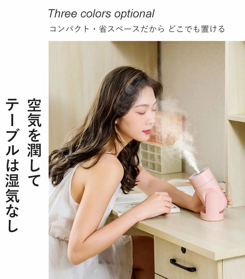 卓上加湿器 加湿器 保湿加湿 夏 オフィス USB充電式 ミニ小型 多機能 肌保湿 スチーム噴霧 小型卓上加湿器 角度調整 首振り加湿器 卓上 最長8時間使用可能 空気清浄機 部屋車 220ml大容量