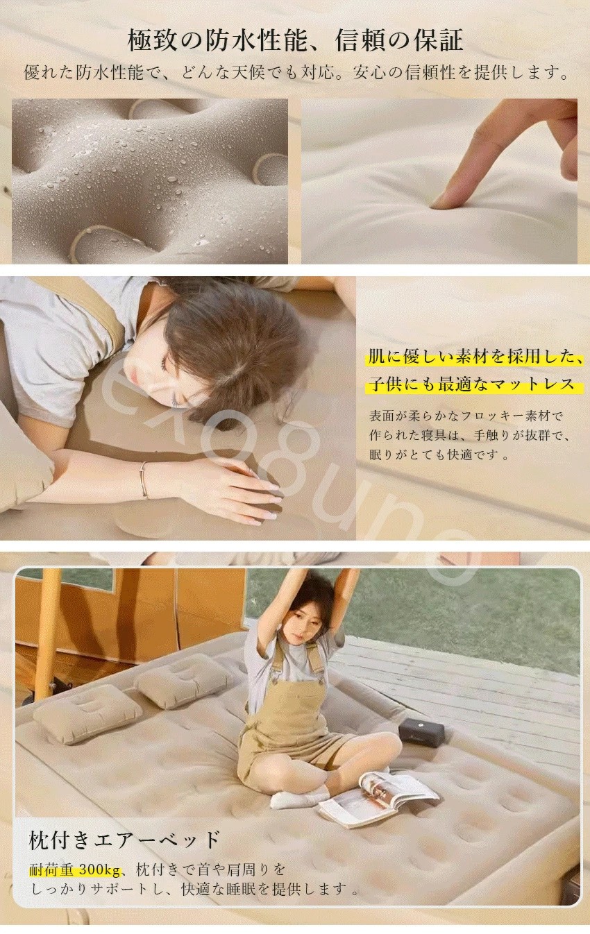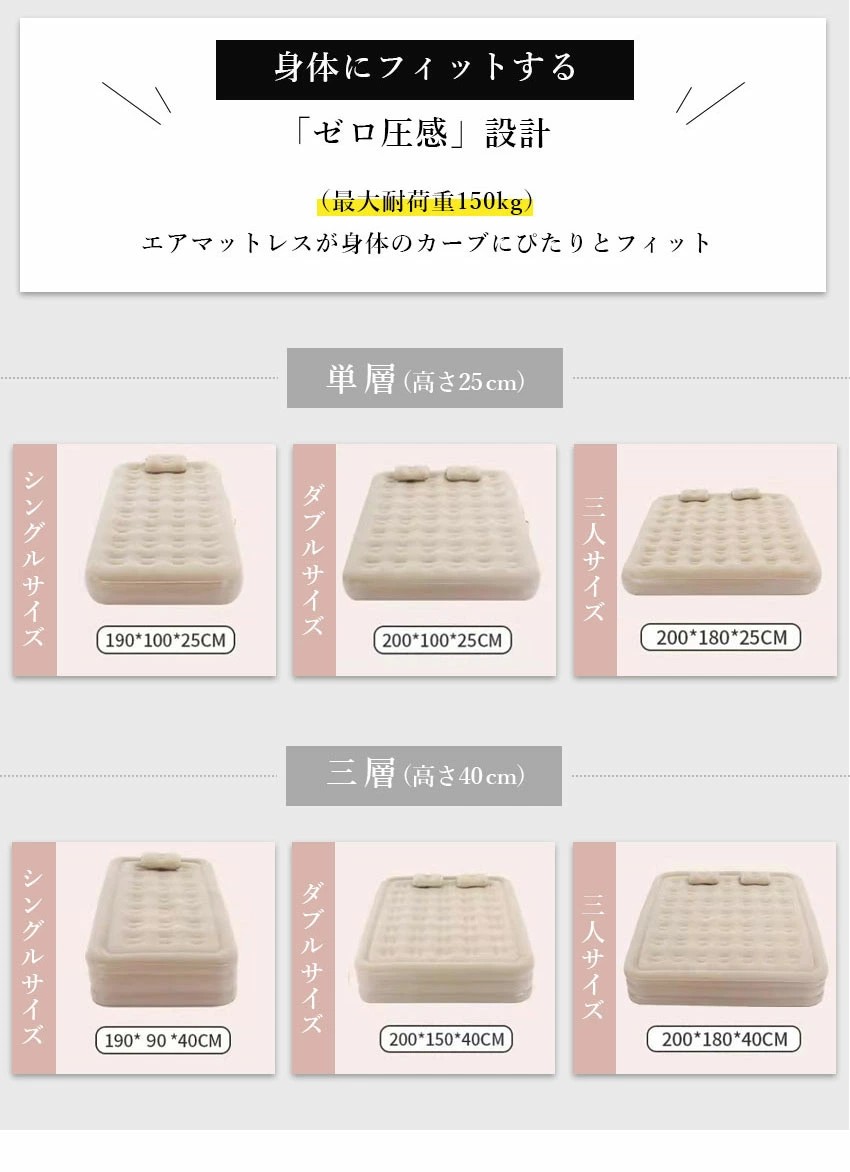 エアーベッド 電動ポンプ内蔵 シング 単層(高さ25cm)シングルサイズ 単層(高さ25cm)ダブルサイズ 単層(高さ25cm)3人サイズ 三層(高さ40cm)シングルサイズ 三層(高さ40cm)ダブルサイズ 三層(高さ40cm)3人サイズ 空気入り枕 1個