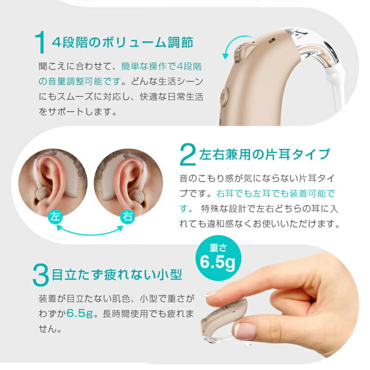 集音器 クリアで自然な聞こえ 耳掛け型集音器 左右兼用 USB充電式 騒音抑制 4段階のボリューム調節 デュアル騒音抑制 敬老の日 ハウリング防止