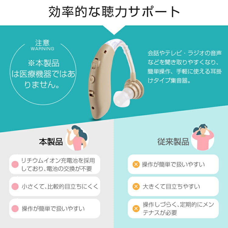 集音器 クリアで自然な聞こえ 耳掛け型 ネイビー ブッラク カーキ