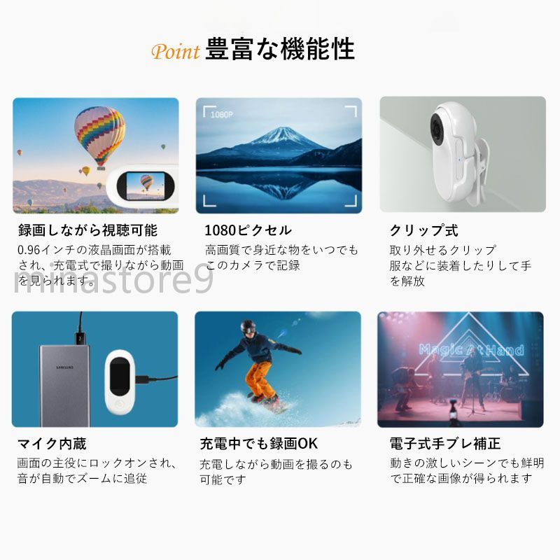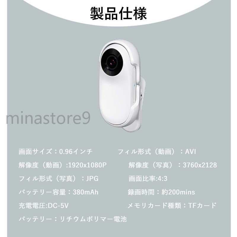 アクションカメラ 超小型 手振れ補正 ブラック ホワイト