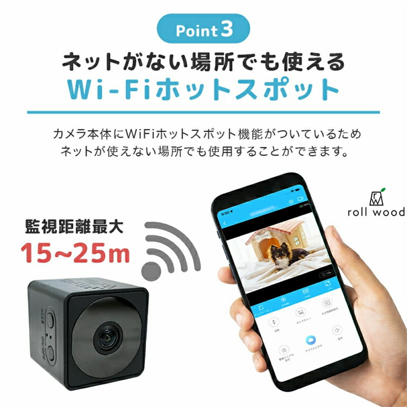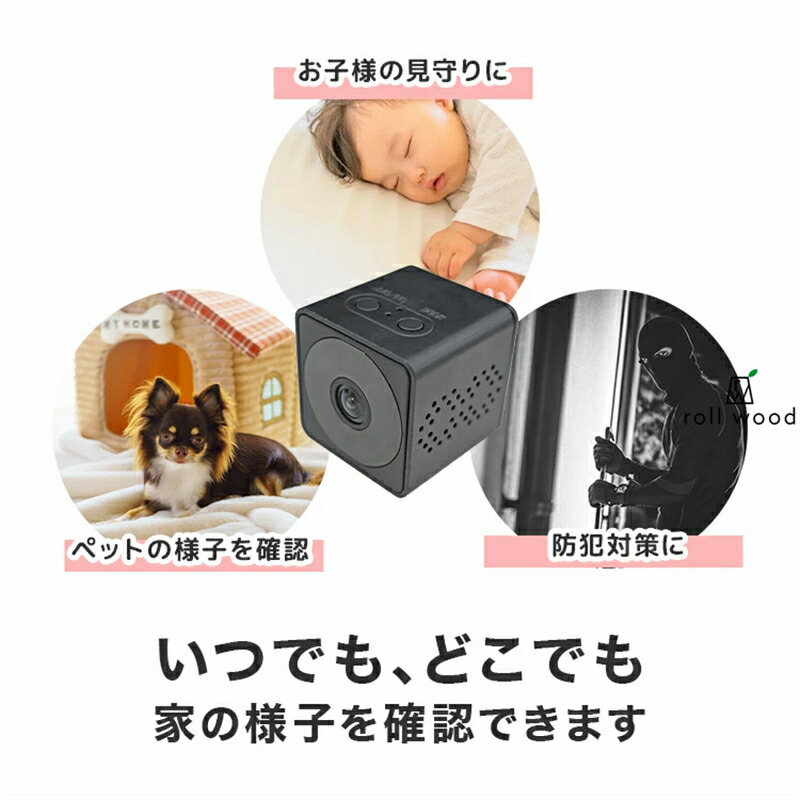 防犯カメラ 小型カメラ 小型 家庭用 屋内 屋外 監視カメラ 工事不要 長時間録画 人感センサー 人体感知 動体検知 暗視 赤外線 自動録画 ループ録画 上書き録画 駐車場 車庫 簡単操作 かんたん設置 webカメラ スマホ 遠隔 WiFi