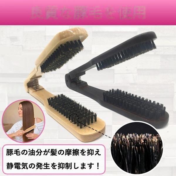 ツインブラシ ヘアブラシ 挟む 豚毛 ブラウン ナチュラル