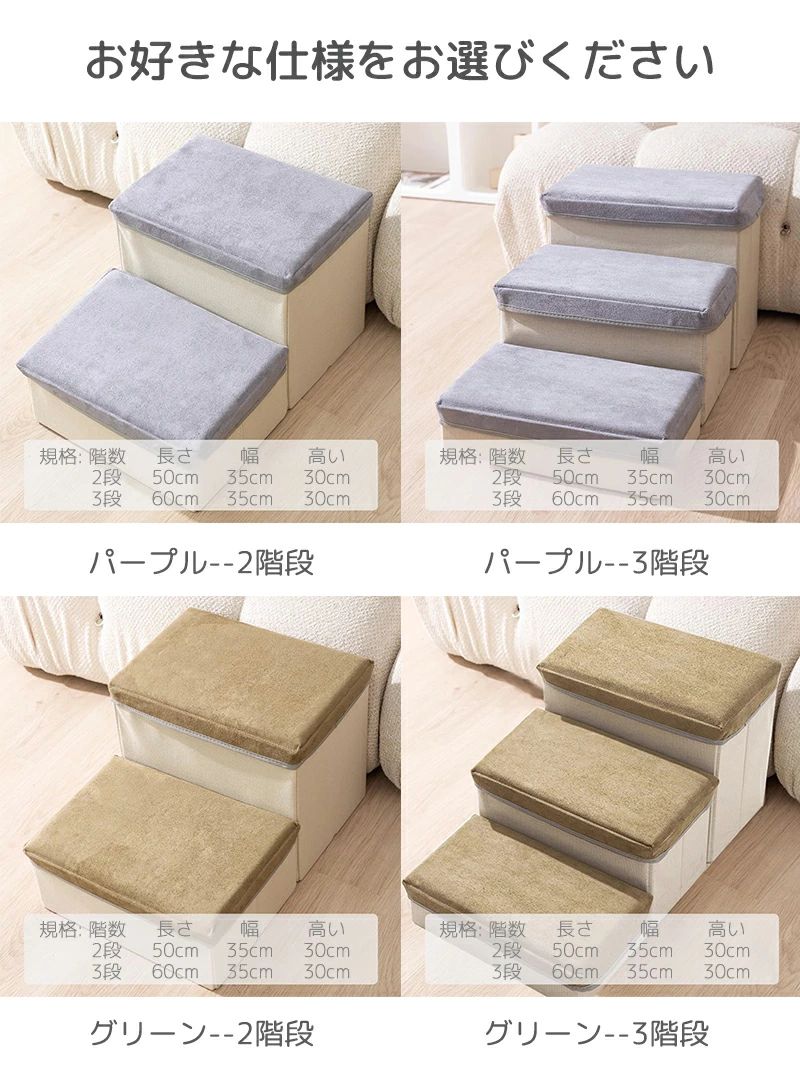 ドッグステップ 2 3段 収納 折りた 犬用品 介護用品 スロープ ステップ 通販 パープル グリーン 2段階 3段階(+781)