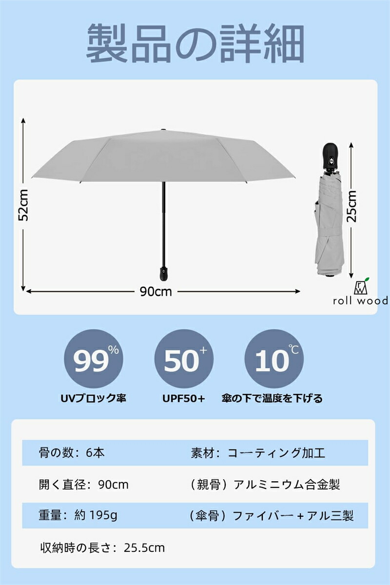 日傘 超軽量 195g UVカット率100% 完全遮光 遮熱 ワンタッチ 折りたたみ傘 コンパクト 折り畳み日傘 紫外線遮断 耐風撥水 晴雨兼用 携帯便利 レディース 母の日 父の日 メンズ