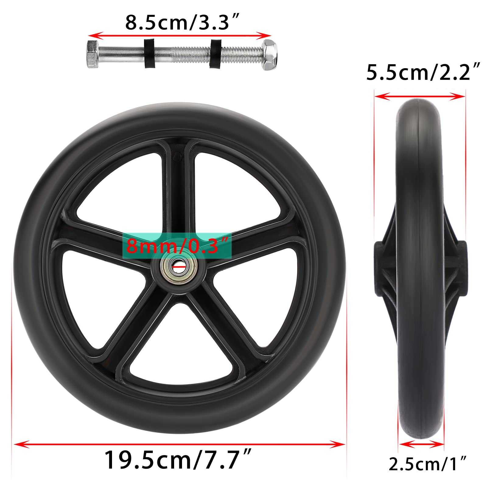 BSTKEY 2本セット 車椅子の前輪 キャスター 車椅子用ホイール 前輪交換 耐摩擦製キャスター 車椅子部品交換 ソリッドホイル
