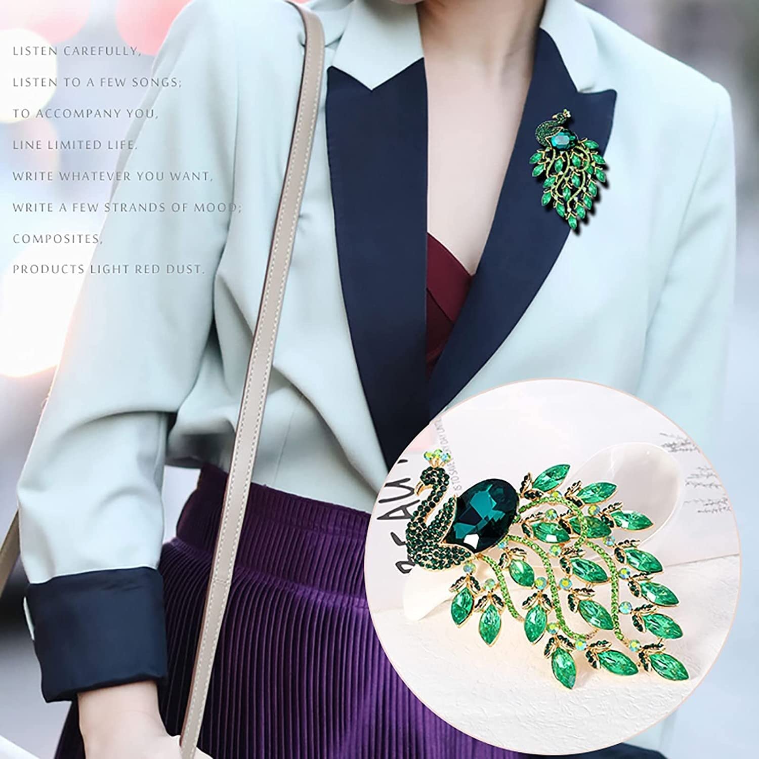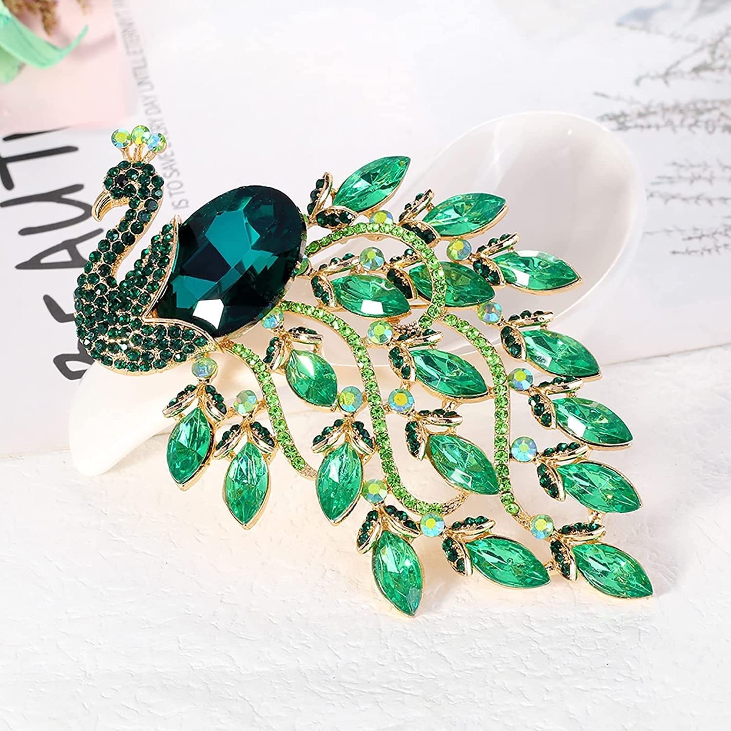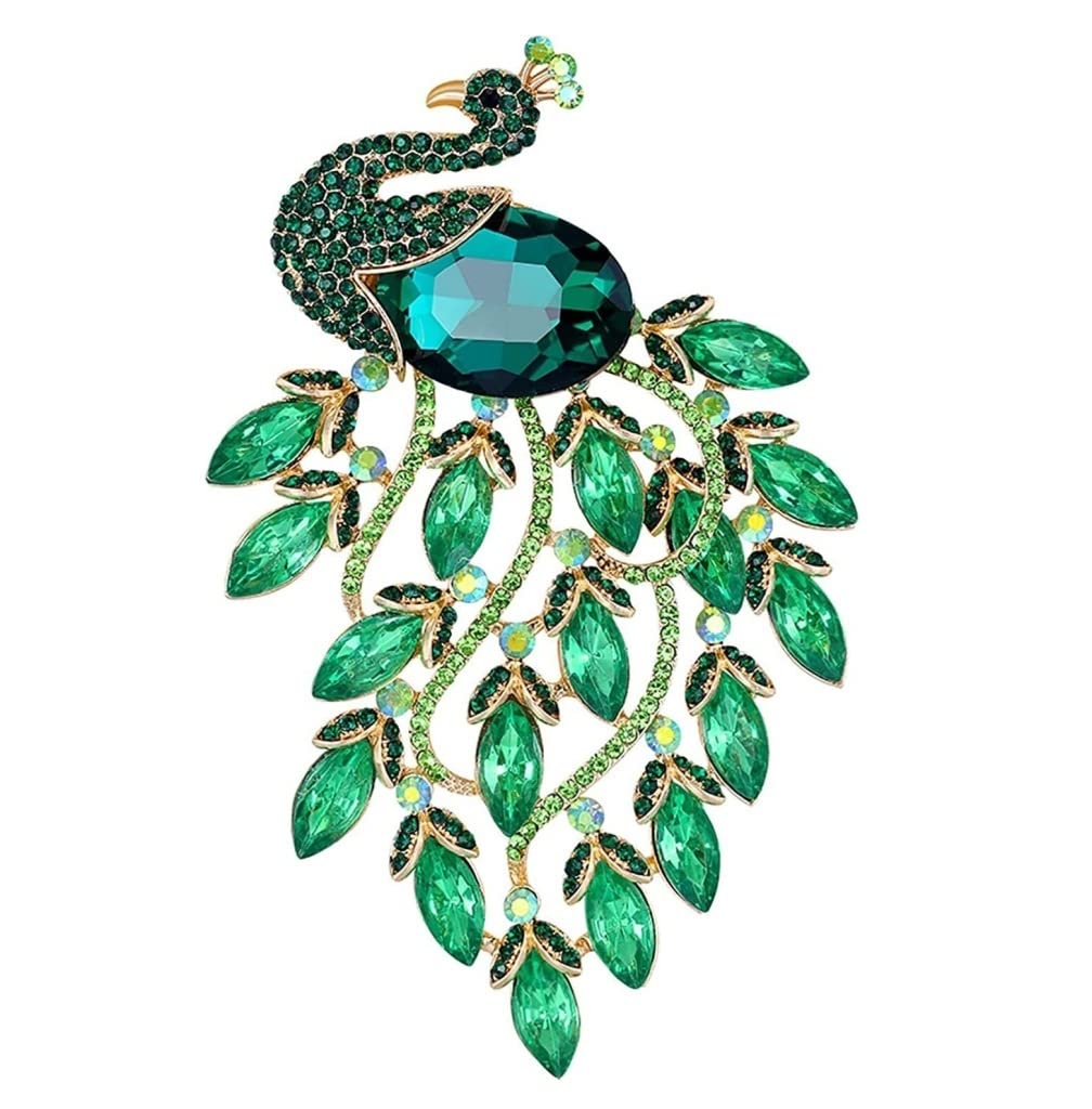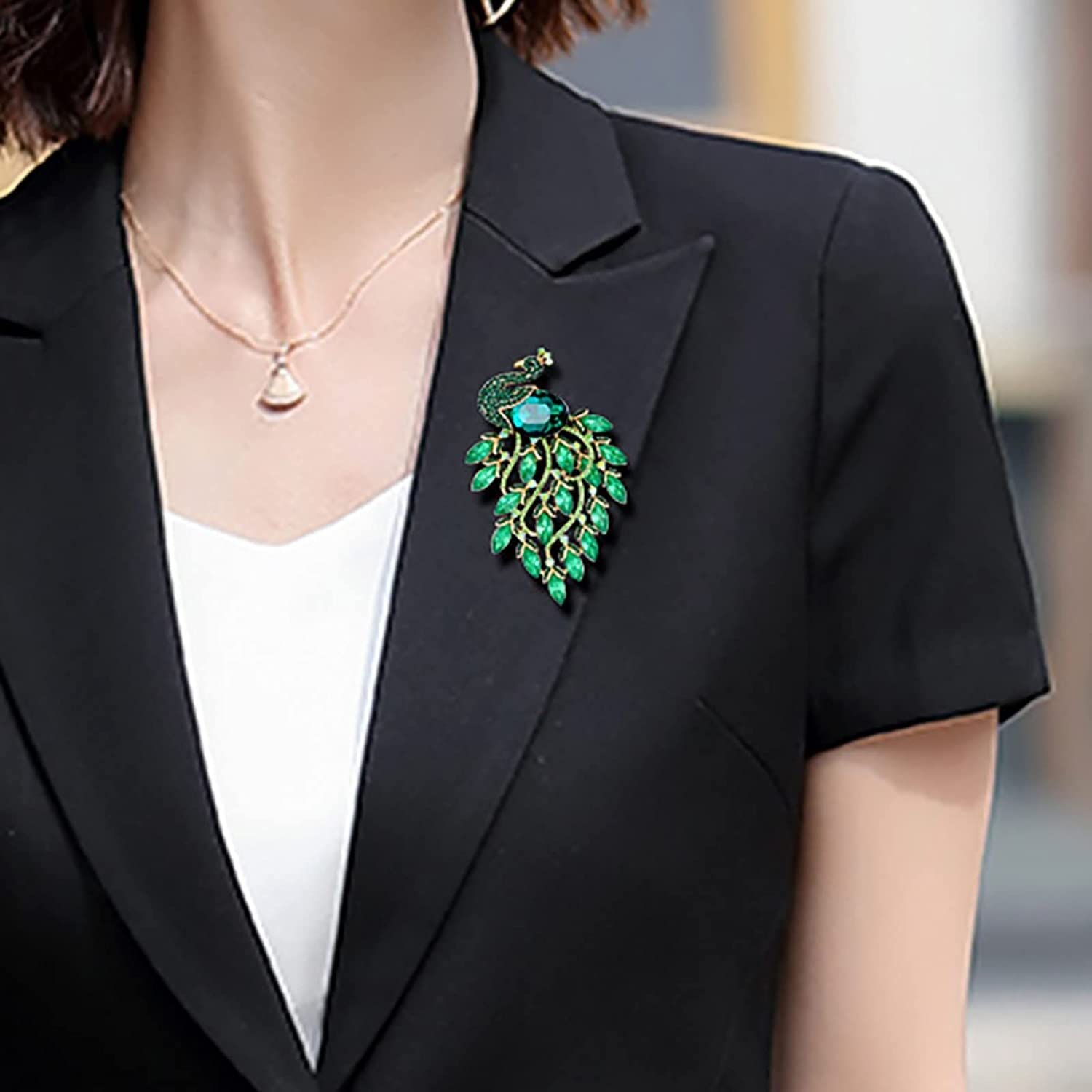 ブローチ 女性のためのブローチとピンヴィンテージアニマルジュエリーコサージュグリーンパーティーダイヤモンド合金孔雀ファッションピンブローチピン コサージュ 卒業式