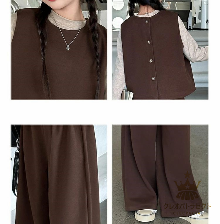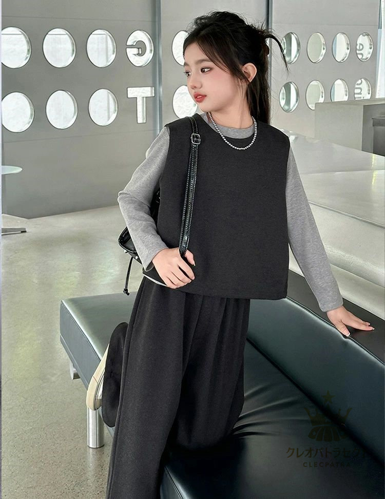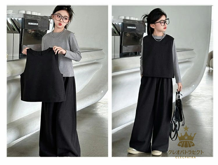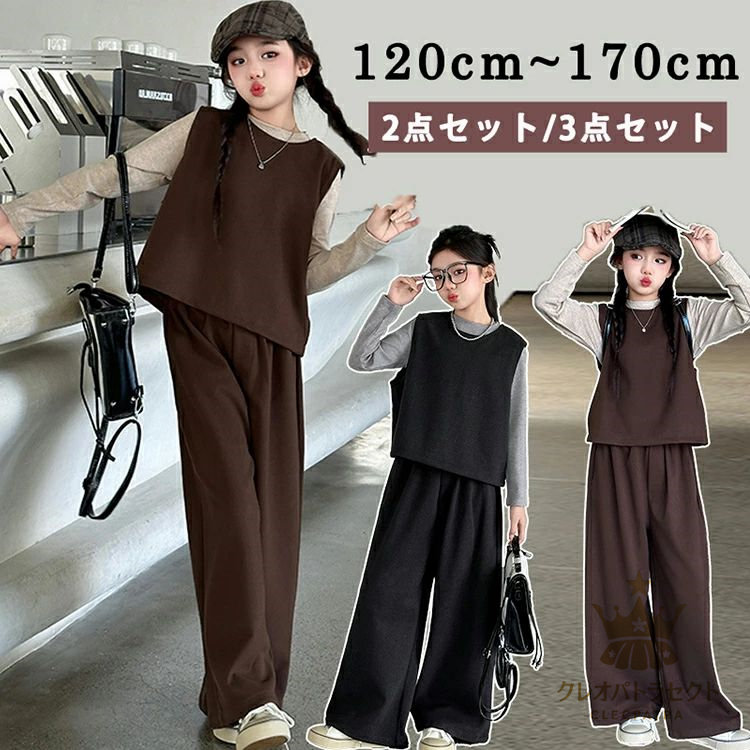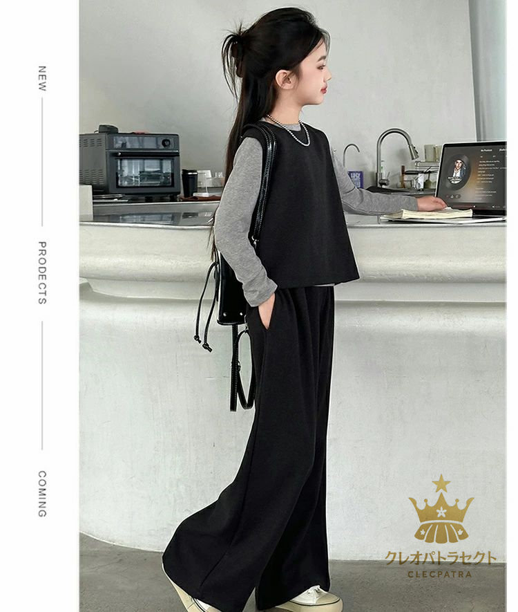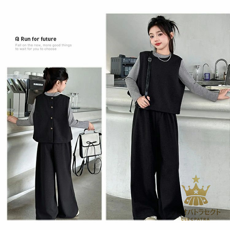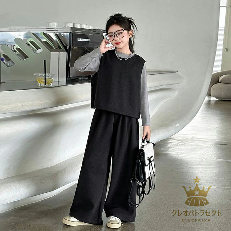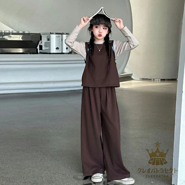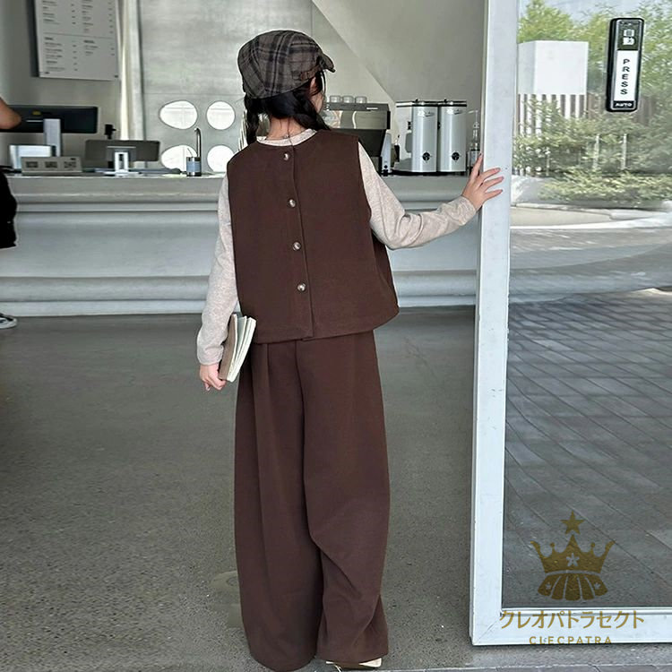 かっこいい 女の子 2点セット 3点セット卒業式 ブラックコーヒー 中学生 高校生 6年生 韓国子供服 おしゃれ 大人っぽい レディース セットアップ インナー ワイドパンツ 入学式 小学生 ベスト