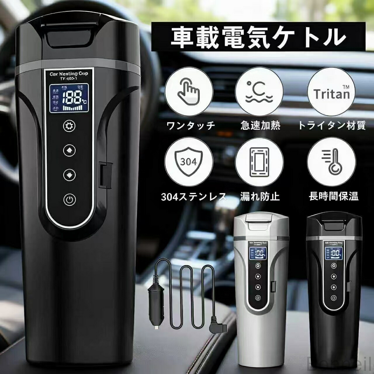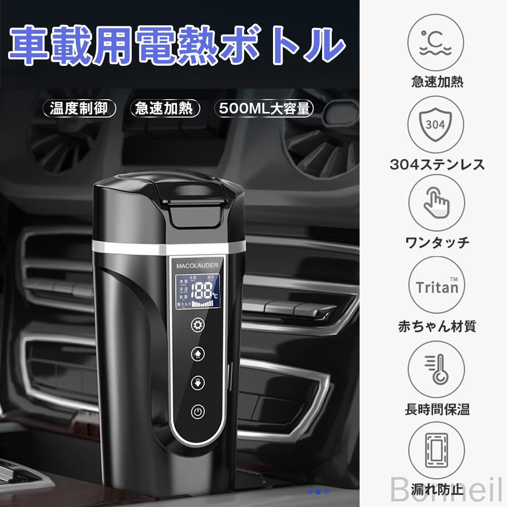 車載電気ケトル 500ml 40℃~100℃対応 カー用 トラック用 DC12V 24V対応 加熱 保温 湯沸し器 湯ボルト 電気ポット 車中泊用 沸騰 お茶 粉ミルク用 LCDディスプレイ搭載