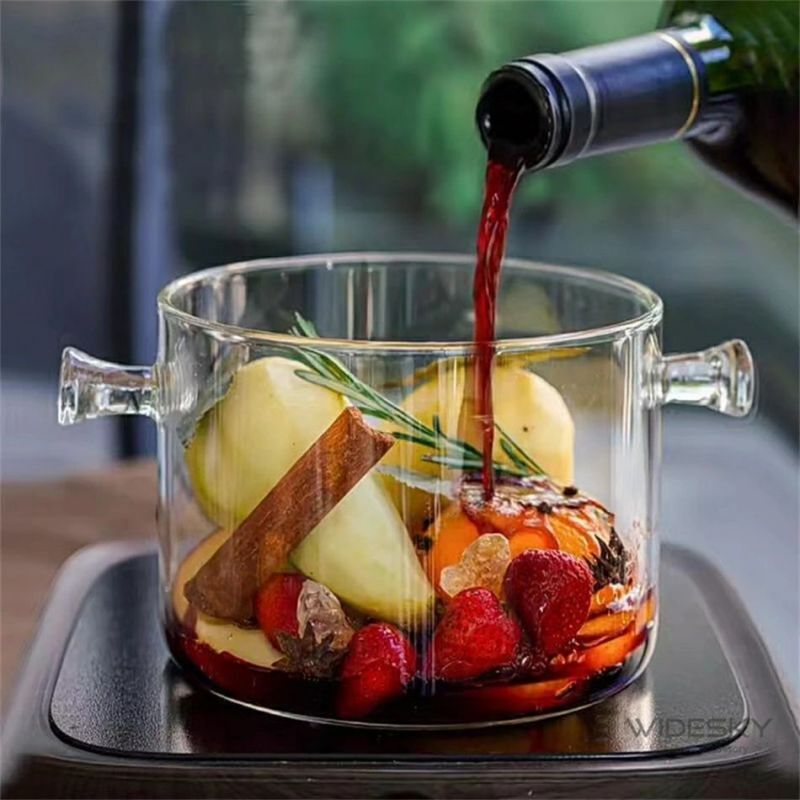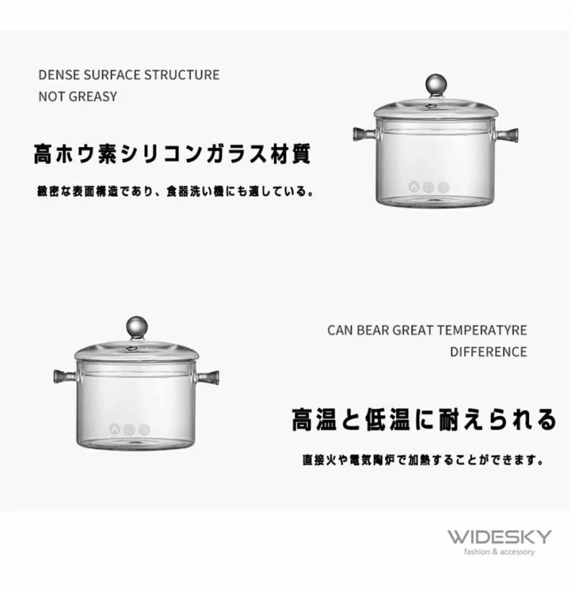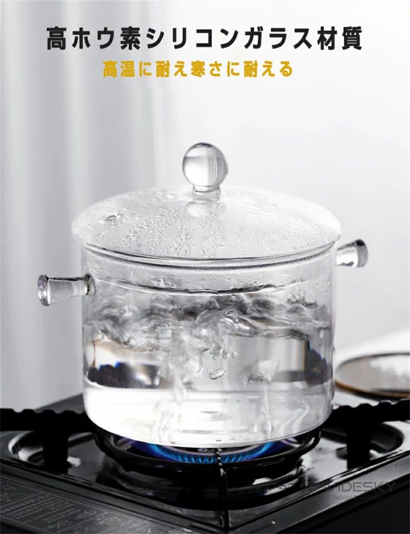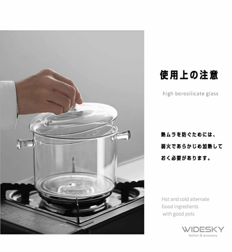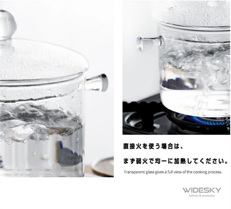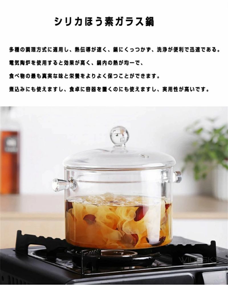 ガラス鍋透明ガラススープ鍋、家庭料理、フタ付き、取っ手、電子レンジ、直火、耐熱性、煮込み鍋焦げ付き防止加工 ガラス鍋 透明ガラススープ鍋