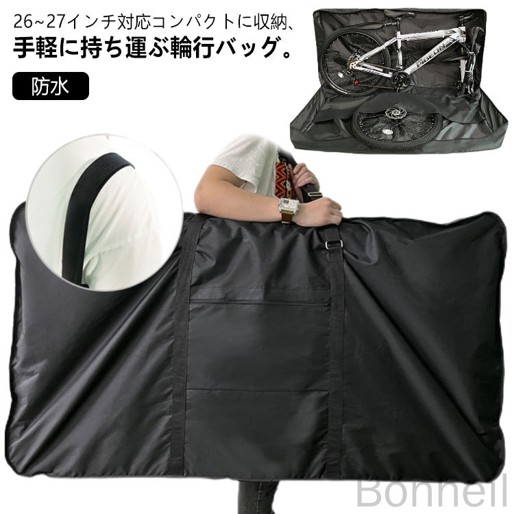 輪行バッグ 27インチ クロスバイク 輪行袋 輪行ケース 前輪のみ外す仕様 26インチ 700c以下対応 横向き収納 ホイールポケット付き 仕切り付き ロードバイク マウンテンバイク用