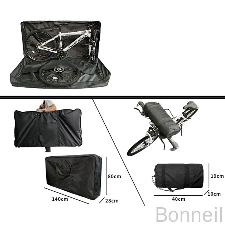 26~27インチ対応♪コンパクトに収納、手軽に持ち運ぶ輪行バッグ。【収納簡単・フレームを傷つけにくい】ホイールポケット(仕切り)付きでわざわざホイールを縛る手間なく、自転車を横向きに収納することができます。ホイールと自転車フレームを別々に収納することができ、傷つけることを避けられます【前輪外しタイプで楽チン】前輪を外す横型の輪行バッグで、26インチ~27インチ~700cの自転車(ロードバイク/クロスバイク/マウンテンバイク)に対応します。初心者でも簡単に収納できる輪行キャリングバッグ、自転車保管、移動、引っ越し等にオススメです。【修理ツールも収納可能】外側にポケットがあり、自転車のアクセサリーや修理ツール等の収納用に活用できます。【ハンドルに取付可能】Aタイプはハンドルに取付できる収納ポーチ付属、Cタイプは折りたたむだけでハンドルに取付できるようになりますので、使わない時持ち運び便利です。【丈夫な素材】耐久性のある防水素材、高い引裂抵抗、耐摩耗性に優れ、長くお使いいただけます。【自転車移動に便利】ロードバイクやクロスバイクの持ち運びに最適な、輪行バック。自転車を収納して、電車などの公共交通機関に乗車できる輪行袋です。