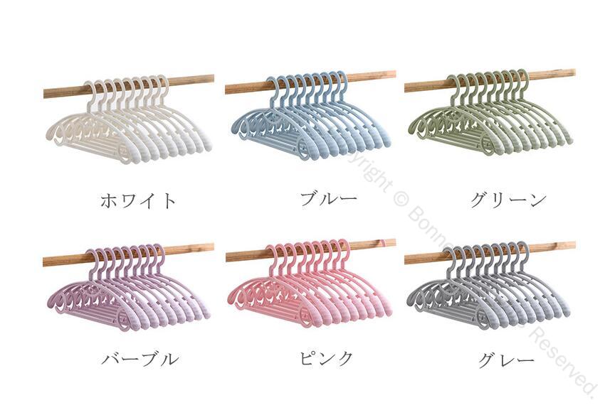 多機能すべらないハンガー10本セット グリーン バーブル ブルー グレー