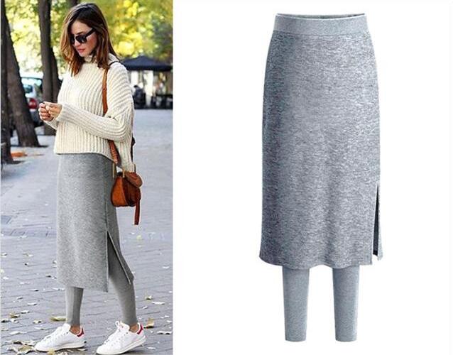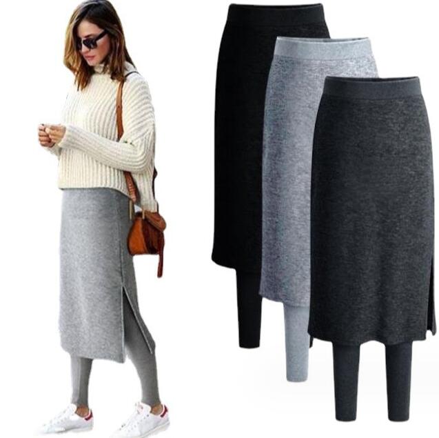 スカート付きレギンス スリットスカート ボトムス パンツ 新登場! ライトグレー春秋 ブラック春秋 ダークグレー春秋 ライトグレー裏起毛 ブラック裏起毛 ダークグレー裏起毛 M L XL XXL XXXL XXXXL