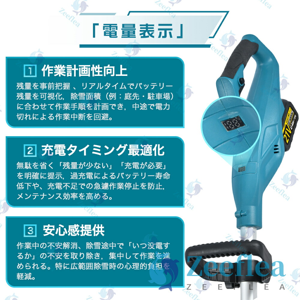 新型除雪機はパワー表示を搭載し、さらに使いやすくなりました。電動除雪機 は3.0Ahの大容量バッテリーを搭載しています。 高性能バッテリーを搭載した 除雪 車は長時間駆動が可能で、バッテリー持続時間は40分となっており、一度の充電で長時間の 除雪 作業が可能です。 これにより、使用の自由度が高まるだけでなく、使用中に頻繁に充電する必要がなくなり、より便利な使用体験が得られます。