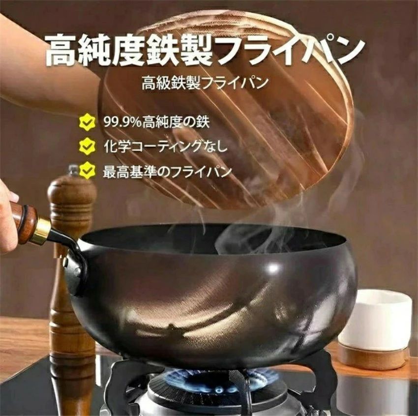 古法鉄鍋 フライパン 焦げ付かない 伝 鍋+ガラス蓋【24cm】 鍋+木製蓋【24cm】 鍋+ガラス蓋【28cm】 鍋+木製蓋【28cm】