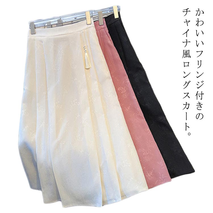タックスカート プリーツスカート ロン レディースファッション 人気 ブラック アイボリー ピンク S M L XL 2XL 3XL
